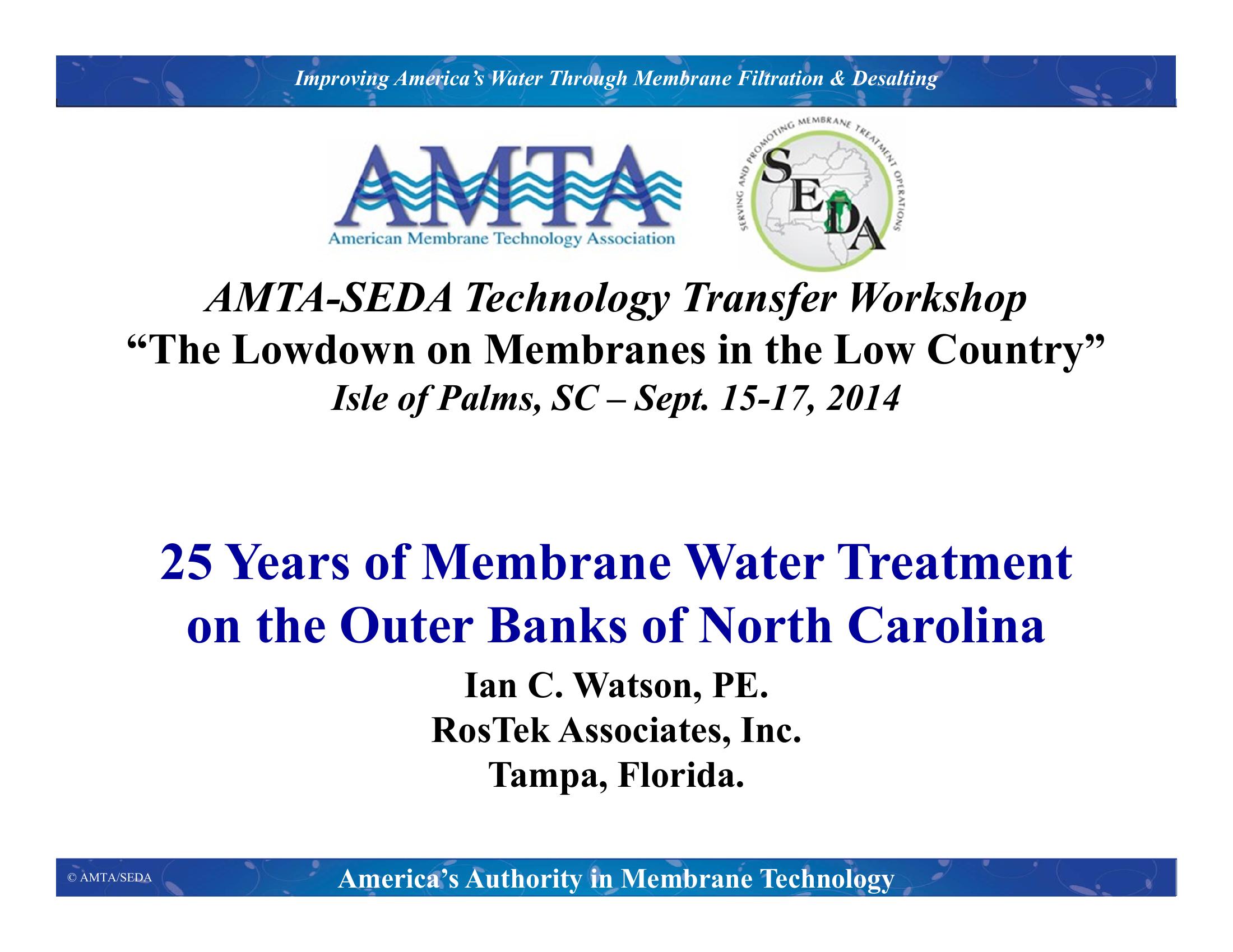 This presentation includes a case study of the Dare Regional Desalination Facility and Frisco RO Plant in North Carolina. Dare Regional Desalination Facility is a 2 mgd facility built in 2004. Frisco is a 2 mgd facility built in 2000, which includes energy recovery.