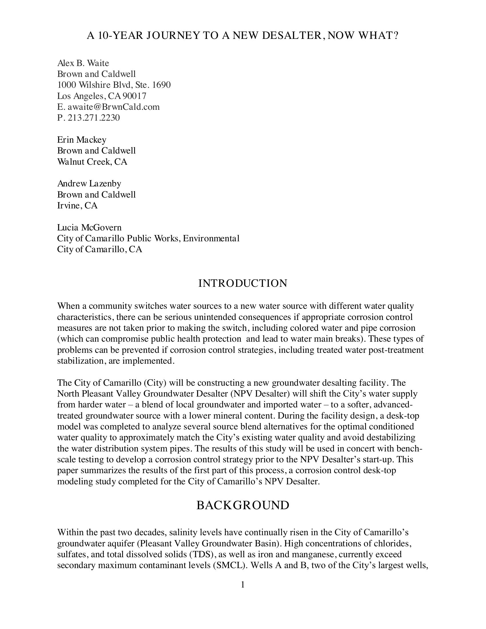 A 10-Year Journey to a New Desalter, Now What?