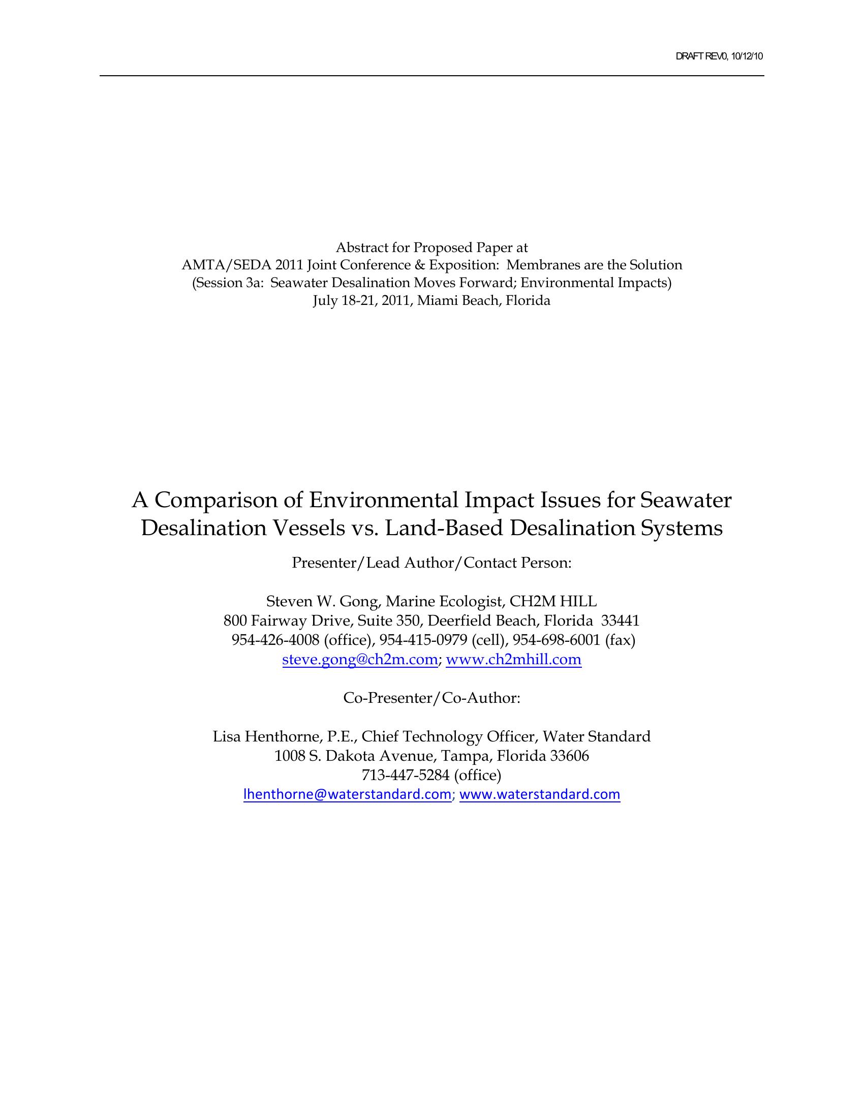 This paper will present a comparison of the environmental impacts associated with Seawater DesalinationVessels against those normally associated with land-based desalination systems and will reveal some substantive differences which will be of interest to those with responsibility for meeting future municipal or industrial water supply demands in coastal environments.