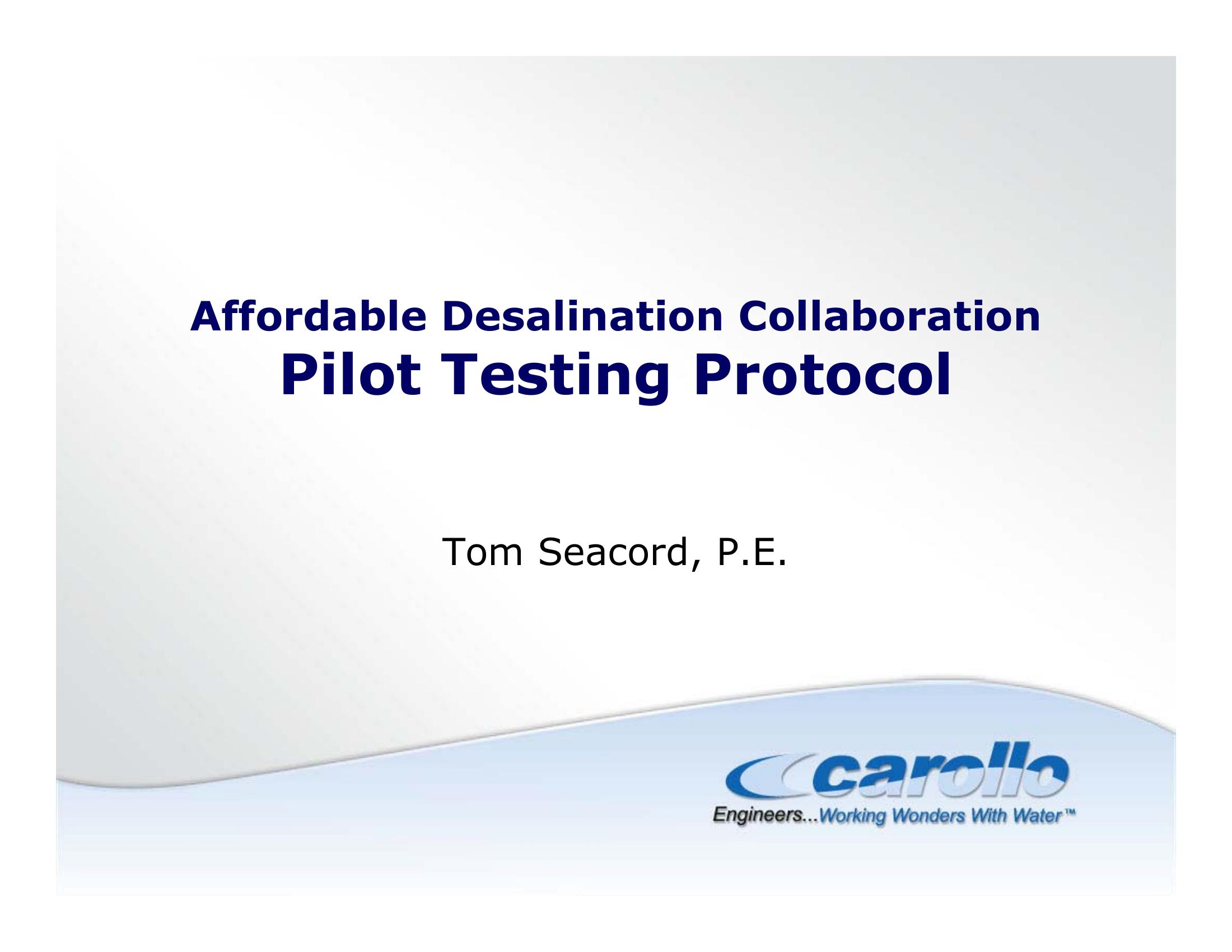 The mission of the Affordable Desalination Collaboration (ADC) is to promote seawater desalination using reverse osmosis (SWRO) as an affordable, viable source of fresh water. In order to accomplish this mission the ADC seeks to demonstrate affordable desalination using off-the-shelf technology and to create a body of data that can guide & benefit future SWRO designs. In this paper, piloting and evaluation methodologies are discussed including a link to additional resources.