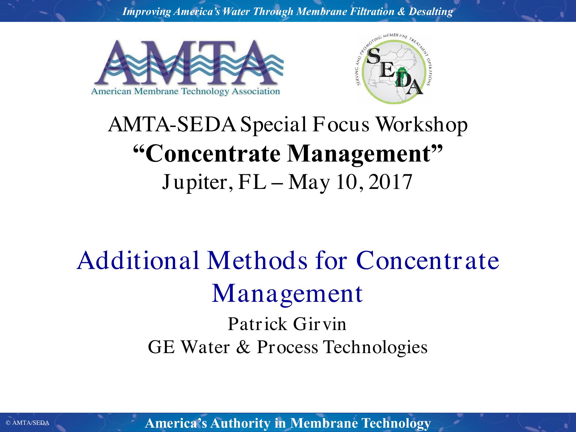 Brine management is becoming a necessity for many communities across the US. Additional technologies can be utilized to treat the concentrate from exisiting systems. These technologies allow for increased production flow and reduction of waste disposal volumes and costs. This presenation will give examples of additional equipment has been designed or installed to reduce the concentrate flow.