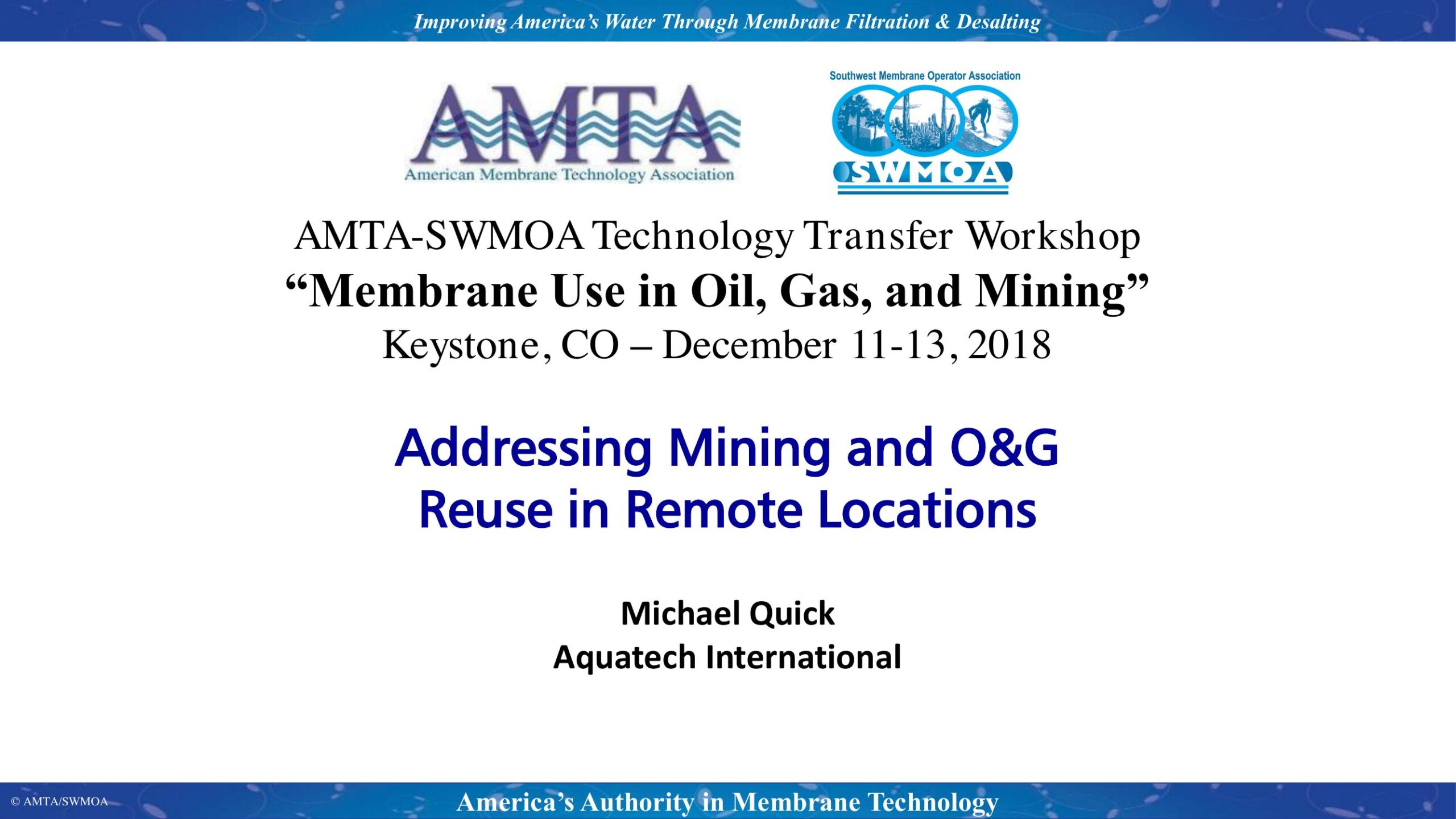 The water requirements of industry are rapidly evolving. Many areas where natural resources are being developed are both remote and water scarce. This, coupled with increasing water needs as well as stricter environmental regulation, is creating significant challenges for industries such as mining and O&G Exploration. This discussion will focus around what these industries are doing in remote locations in order to manage their water and sustainability better through desalination, water reuse, and zero liquid discharge.