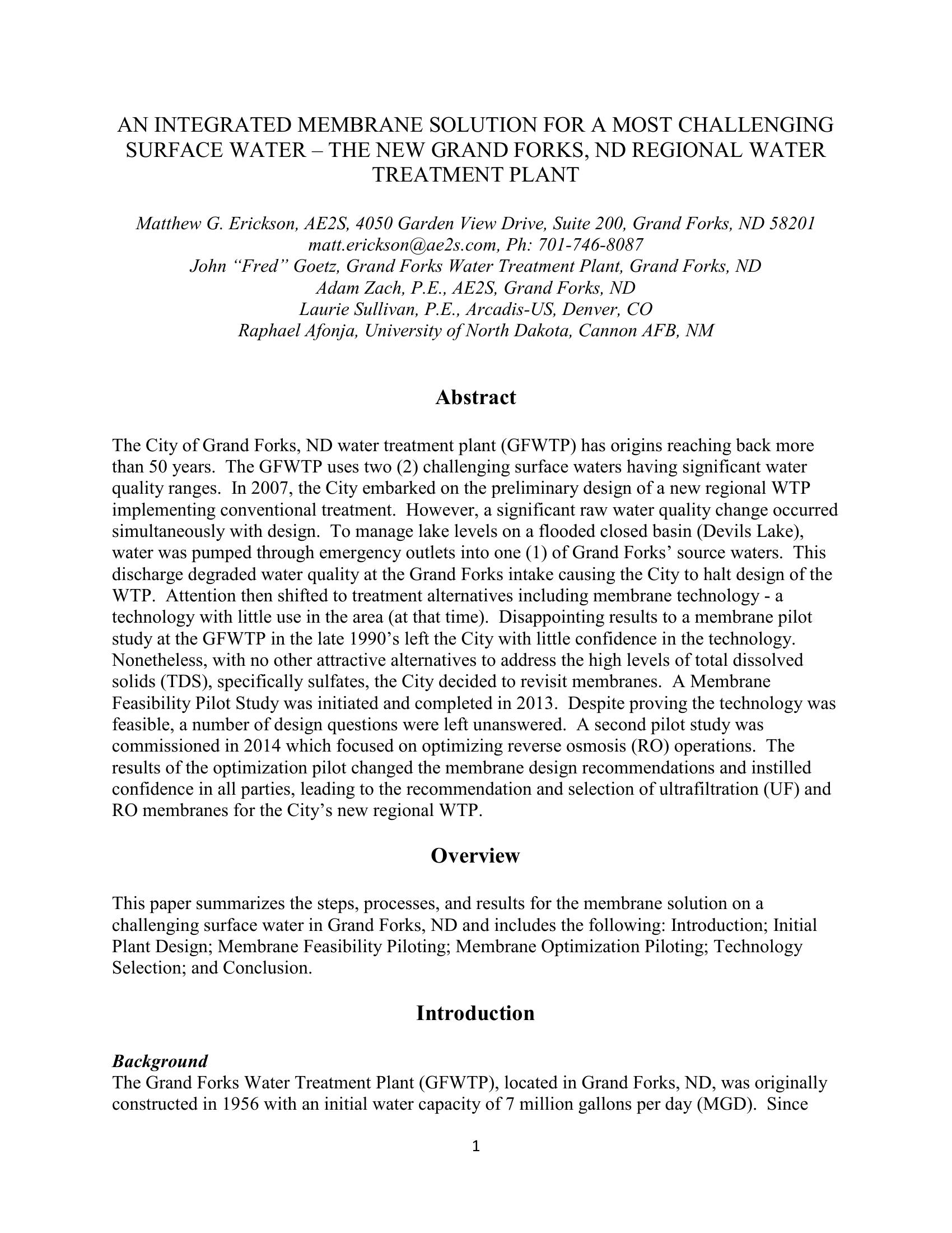 | Keywords | Grand Forks, integrated membrane, ultrafiltration, reverse osmosis, pilot |