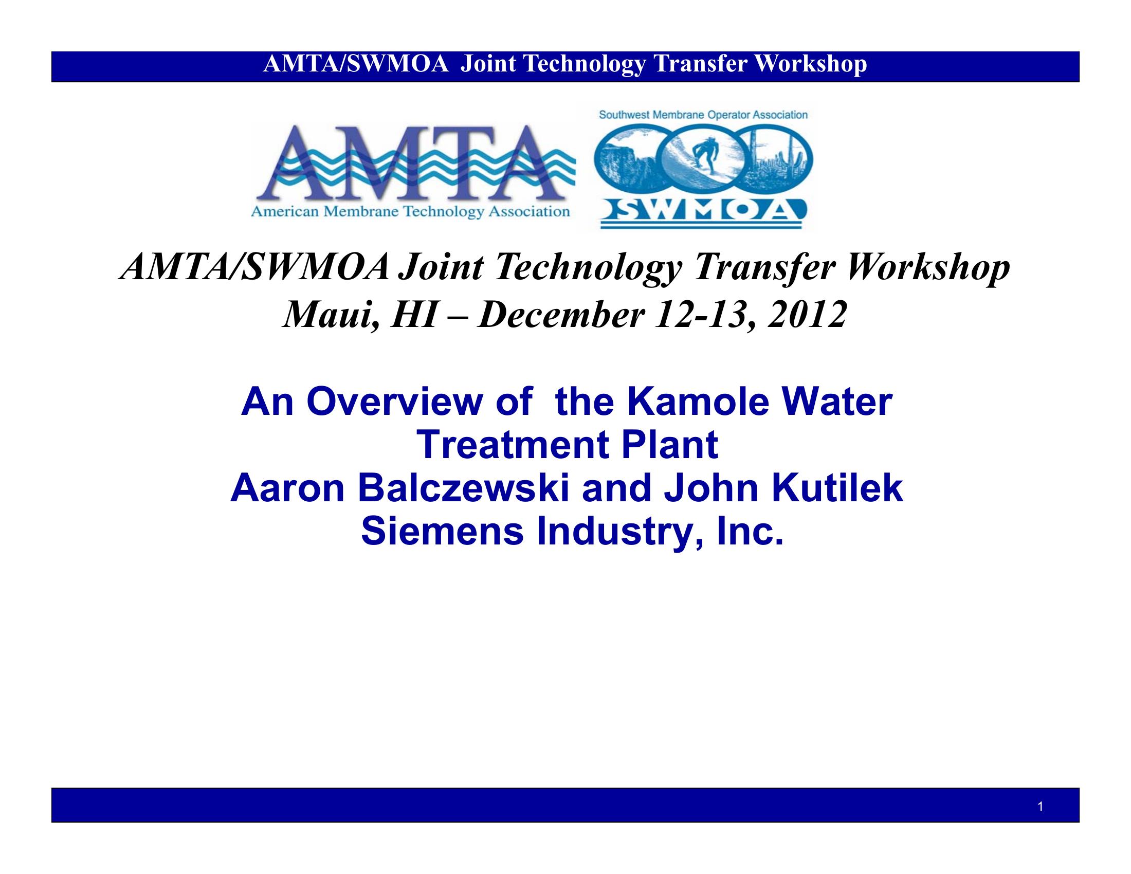 This PowerPoint presentation gives a brief description of the Kamole microfiltration plant on the Island of Maui.