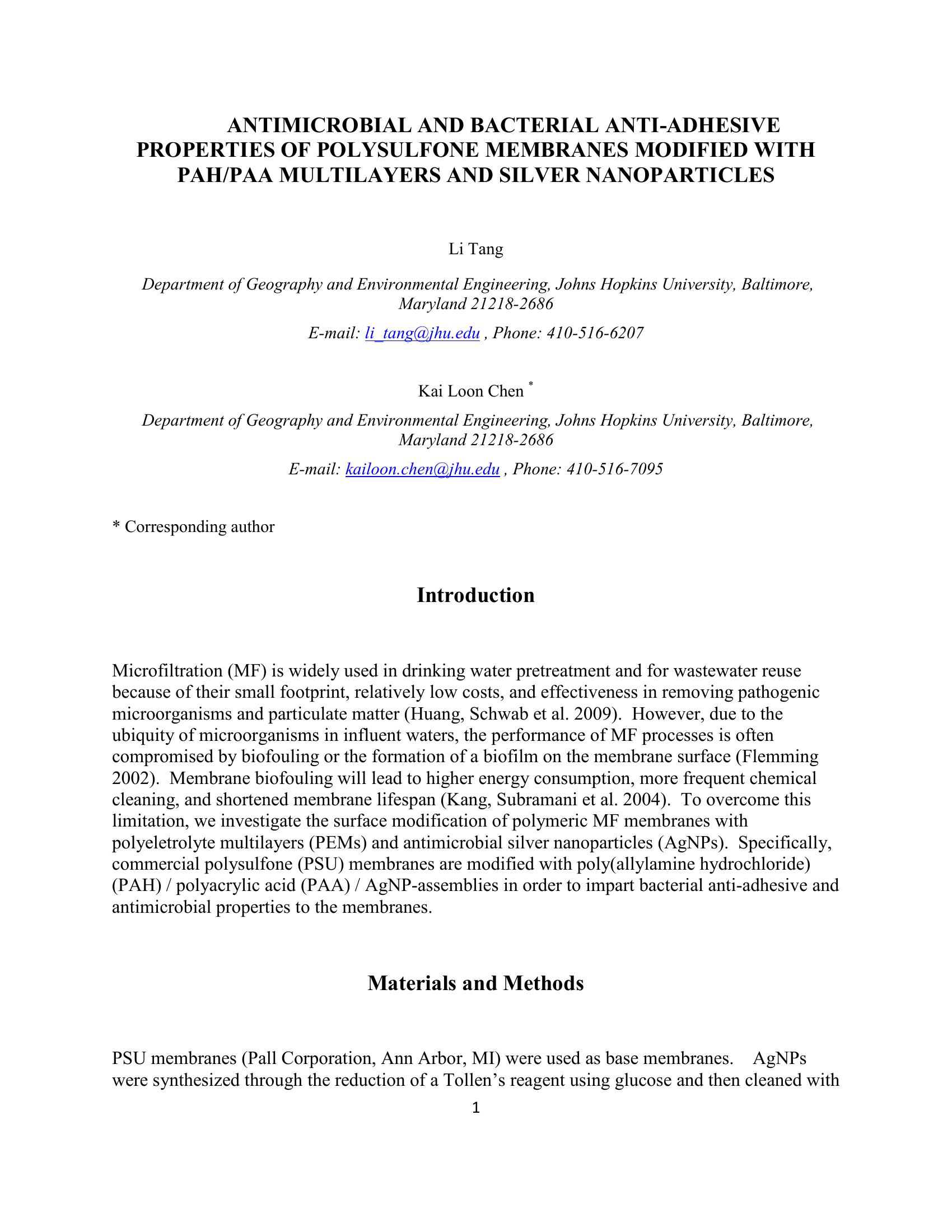 | Keywords | Polysufone, Antimicrobial, anti-adhesion, PEM, AgNP |