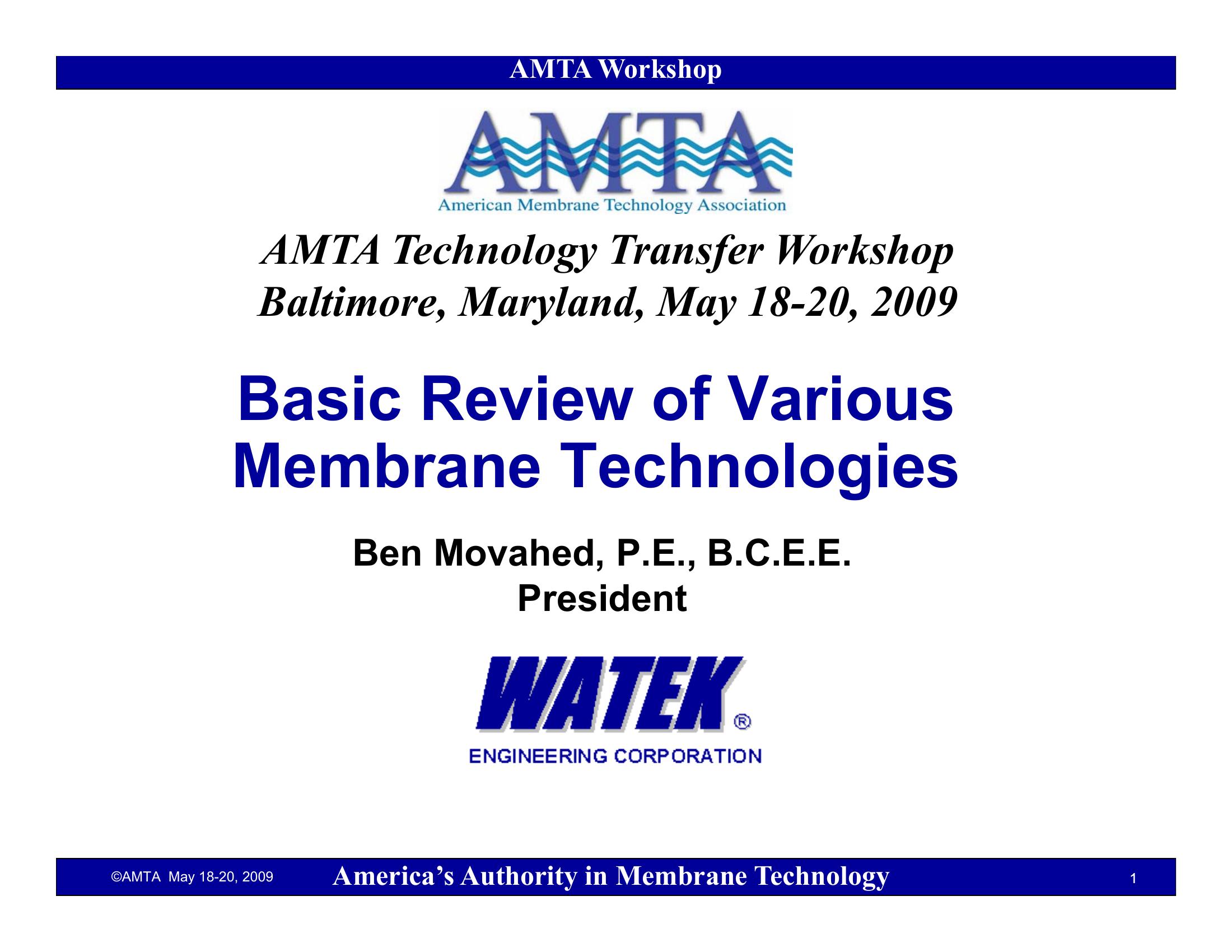 This PowerPoint give a basic review of various Membrane Technologies in 2009