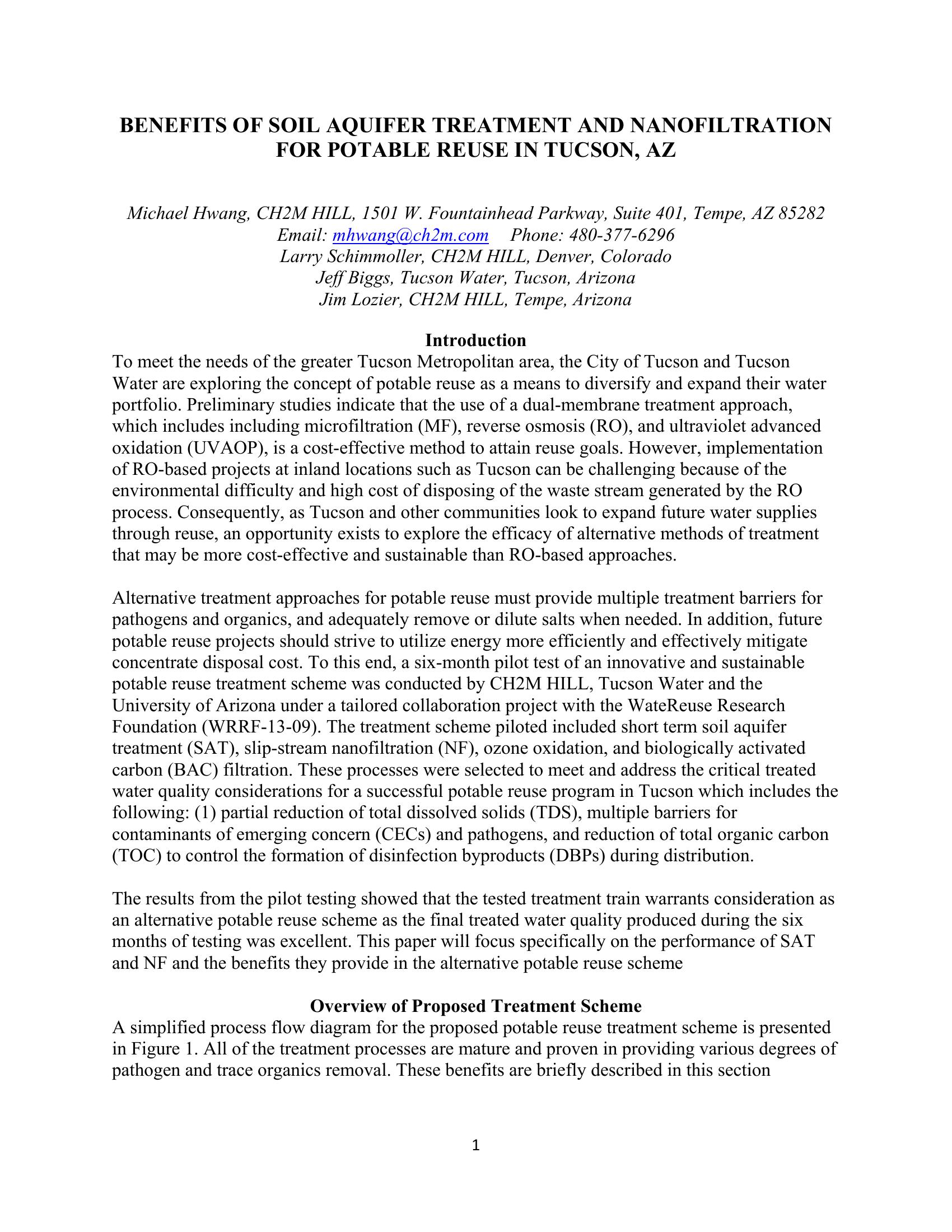 Benefits of Soil Aquifer Treatment and Nanofiltration for Potable Reuse in Tucson, AZ