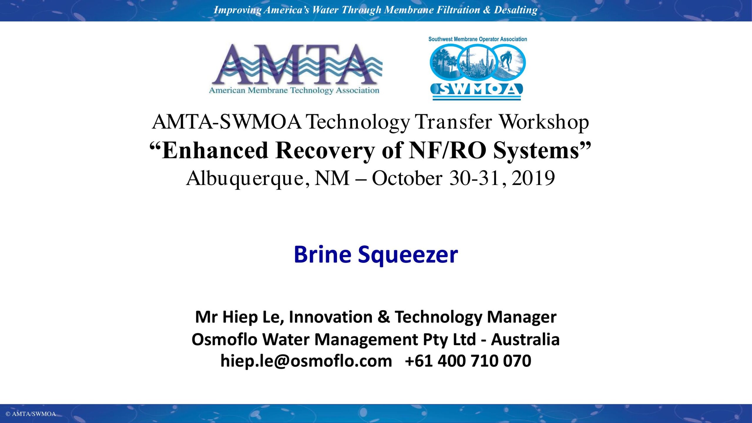 Many inland reverse osmosis (RO) plant consists of evaporation ponds as the only disposal route for the concentrate stream. This climate dependent disposal route is limiting when rainfall seasons are high or when the RO plant requires capacity increase. Increasing the pond area is a typical solution but is becoming difficult due to environmental constraints and high costs, so reduction of the pond volume is typically the preferred method. However, desalinating the pond water or RO concentrate to the highest recovery has technical challenges associated with severe fouling and scaling of membranes or incur high costs from using thermal evaporation technologies. Osmoflo has developed the Brine Squeezer (OBS) process which is based on RO membrane separation and is achieved by innovative plant design, carefully managing the sustainable flux of the site specific water source to manipulate the rates of fouling and scaling. This process alsohiep. differs from Ultra-High Pressure RO (UHPRO) due to the operation of the system precisely in the scaling zone that would have significant impacts on the performance of regular UHPRO systems. The OBS process has been demonstrated at a brewery for over two years, a new larger scale start-up at a uranium mine and a new pilot scale at a nickel refinery.