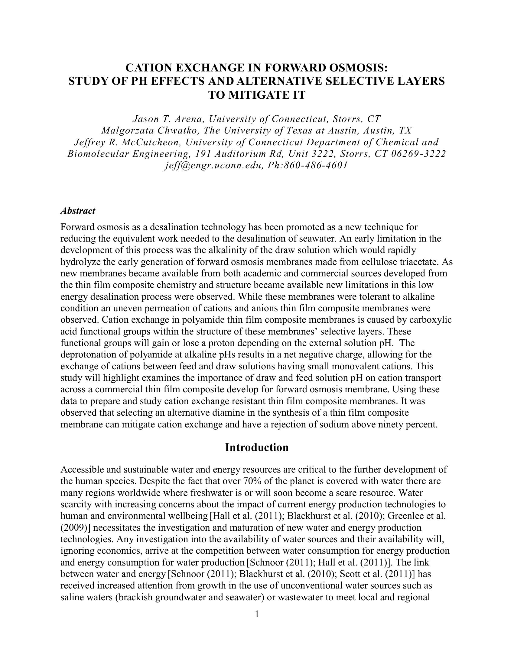 This paper discusses research aimed at reducing cation exchange in Forward osmosis membranes. The effect of pH and modifying the FO membrane are reported.