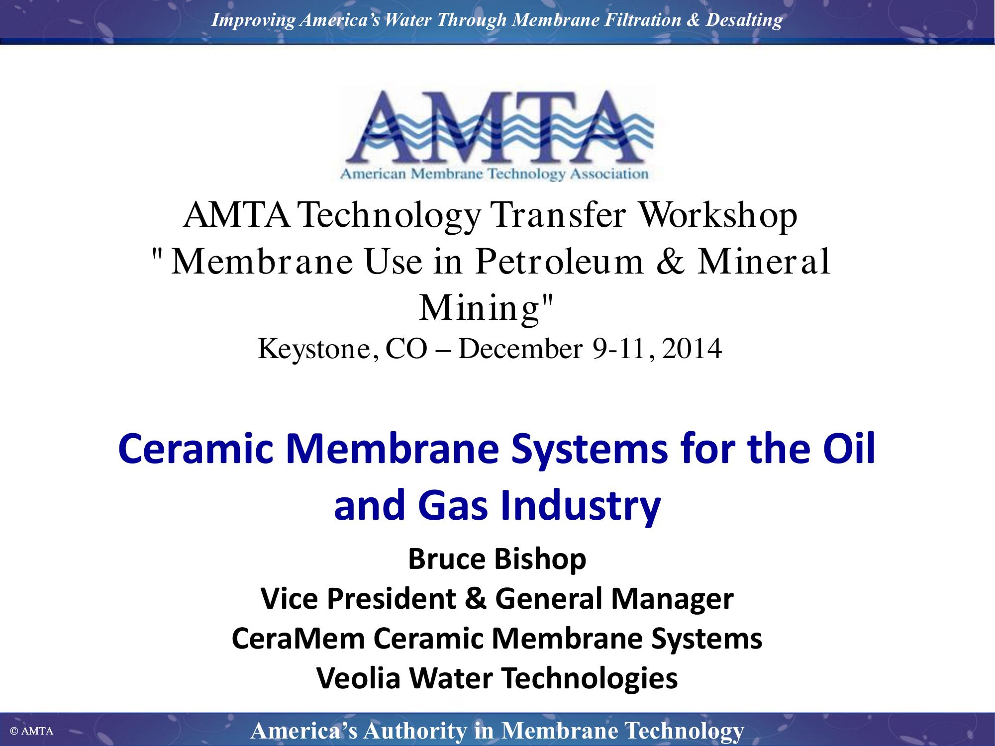 KeywordsOil & Gas, Ceramic, Microfiltration