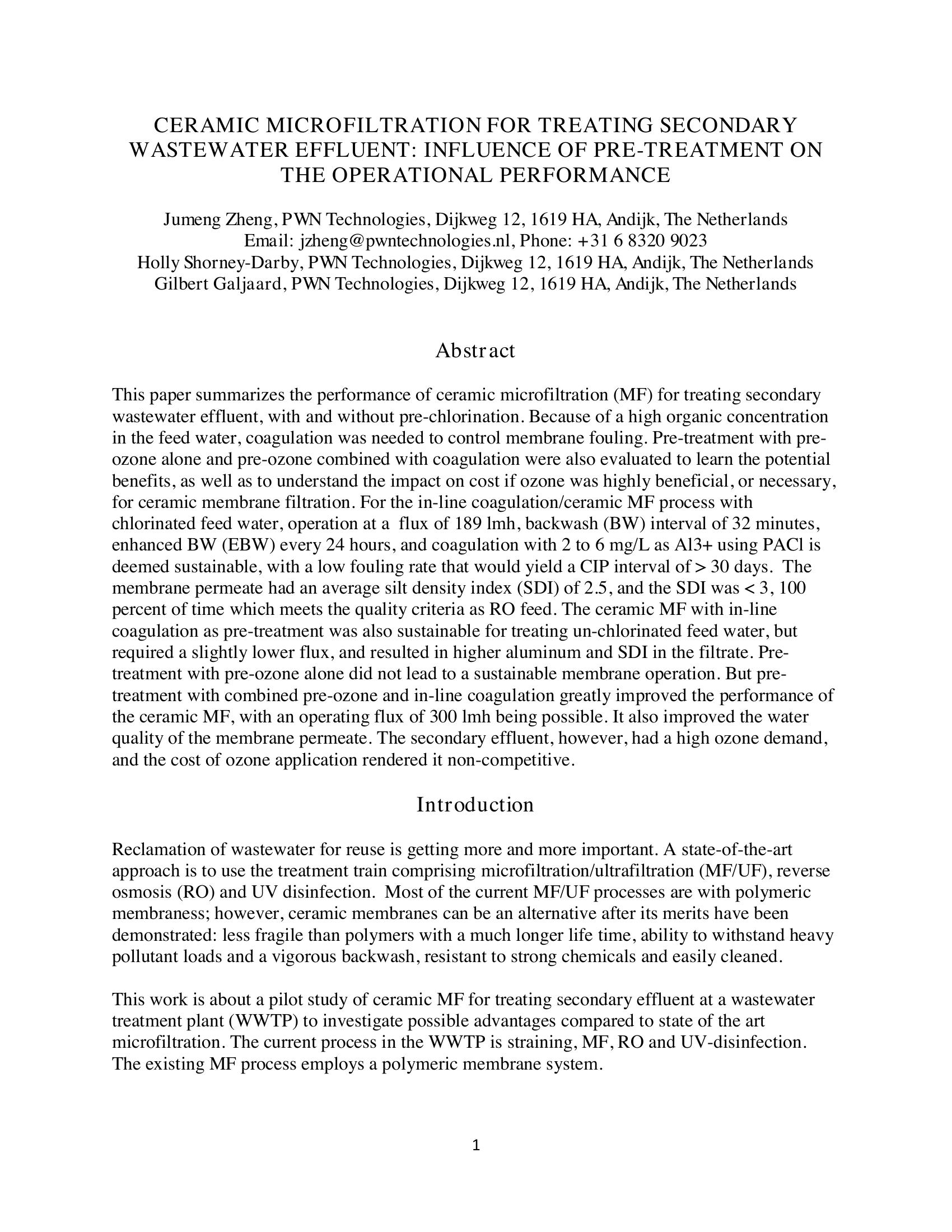 | Keywords | Ceramic, Microfiltration (MF), Wastewater |