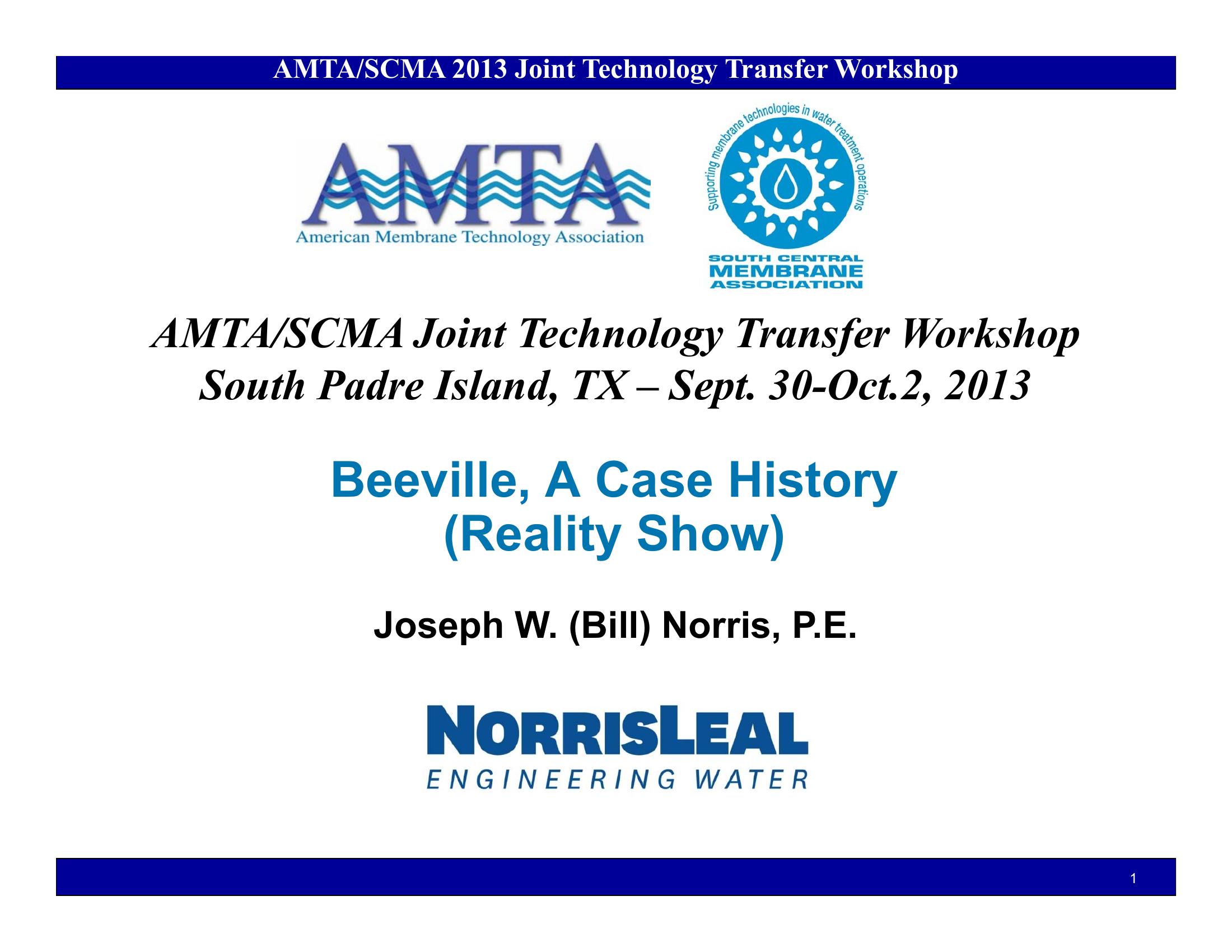 This PowerPoint chronicles the efforts at Beeville, Texas to examine the possible use of membrane technology and consider different water supply options