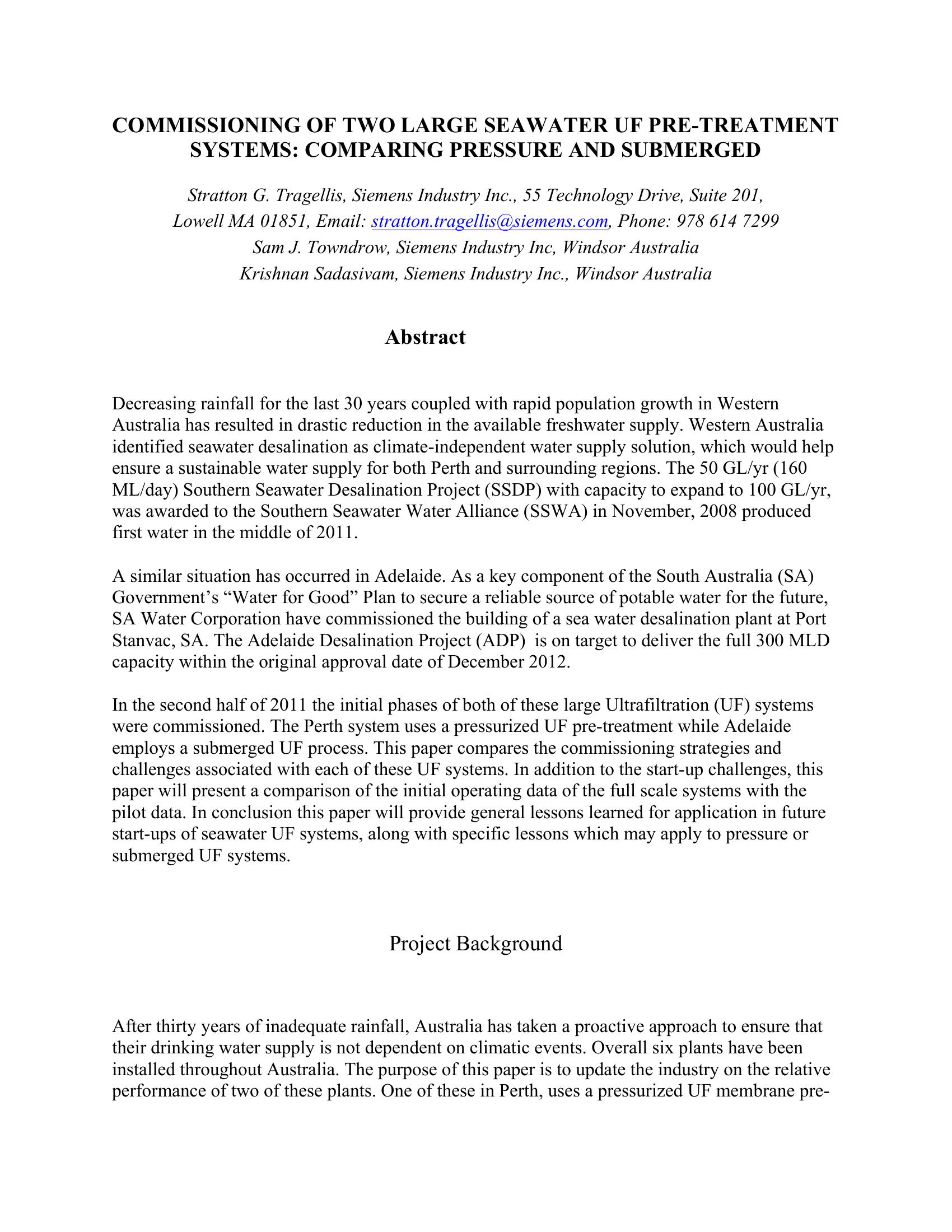 KeywordsAustralian desalination, pressurized UF, submerged MF
