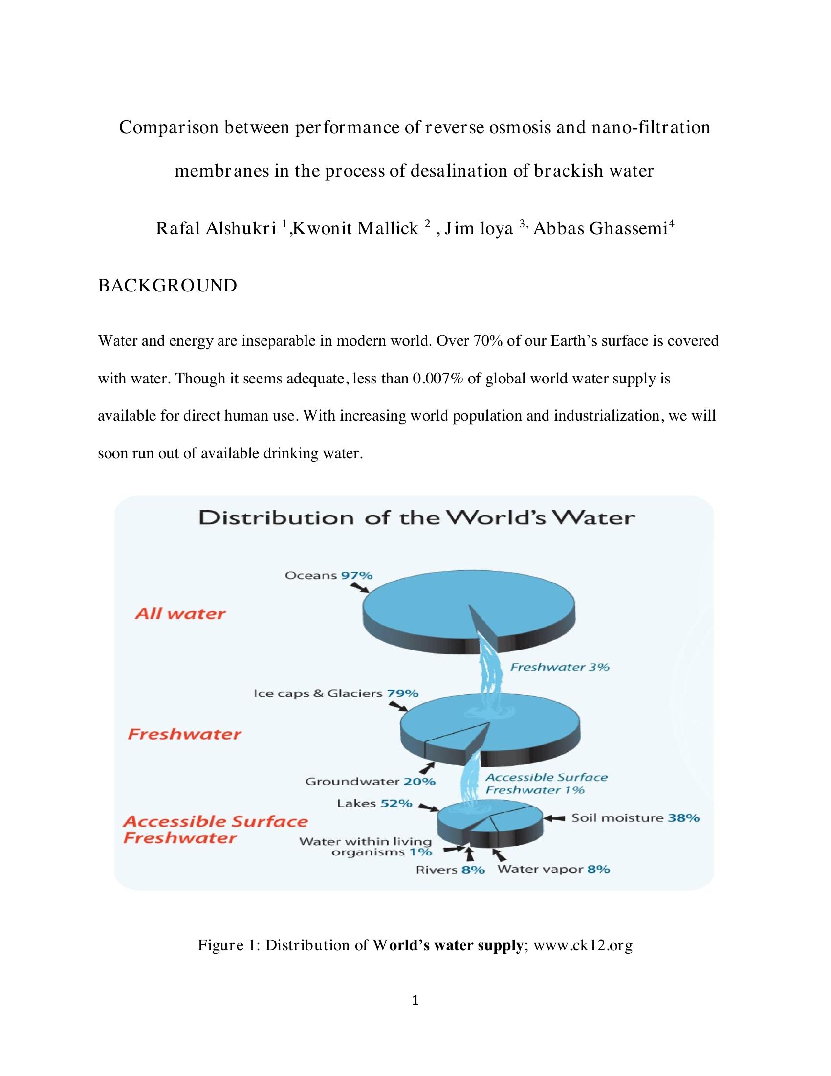 KeywordsComparison, Reverse Osmosis, Nano-filtration, brackish, bench scale