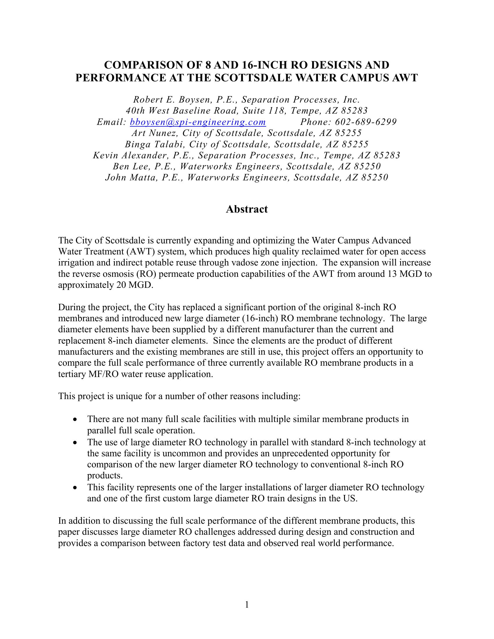 Comparison of 8 and 16-inch RO Designs and Performance at the Scottsdale Water Campus AWT
