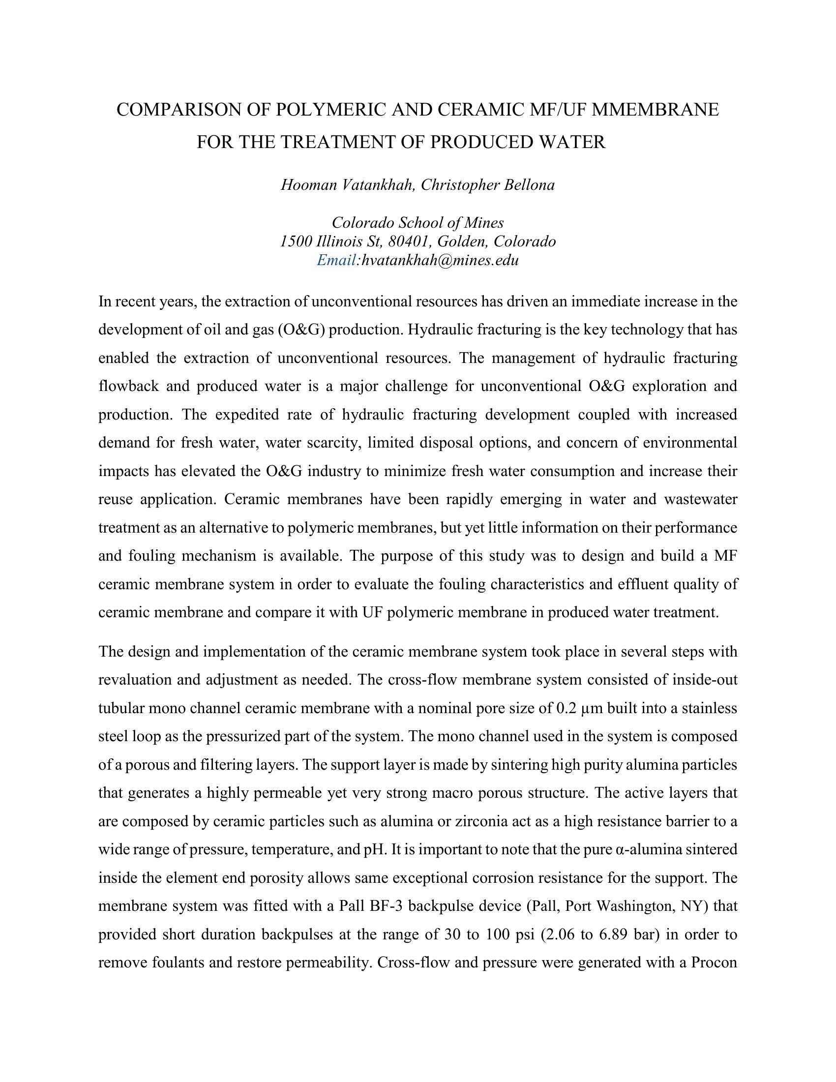 This presentation briefly summarizes the design and operation of a microfiltration for treating a pretreated produced water.