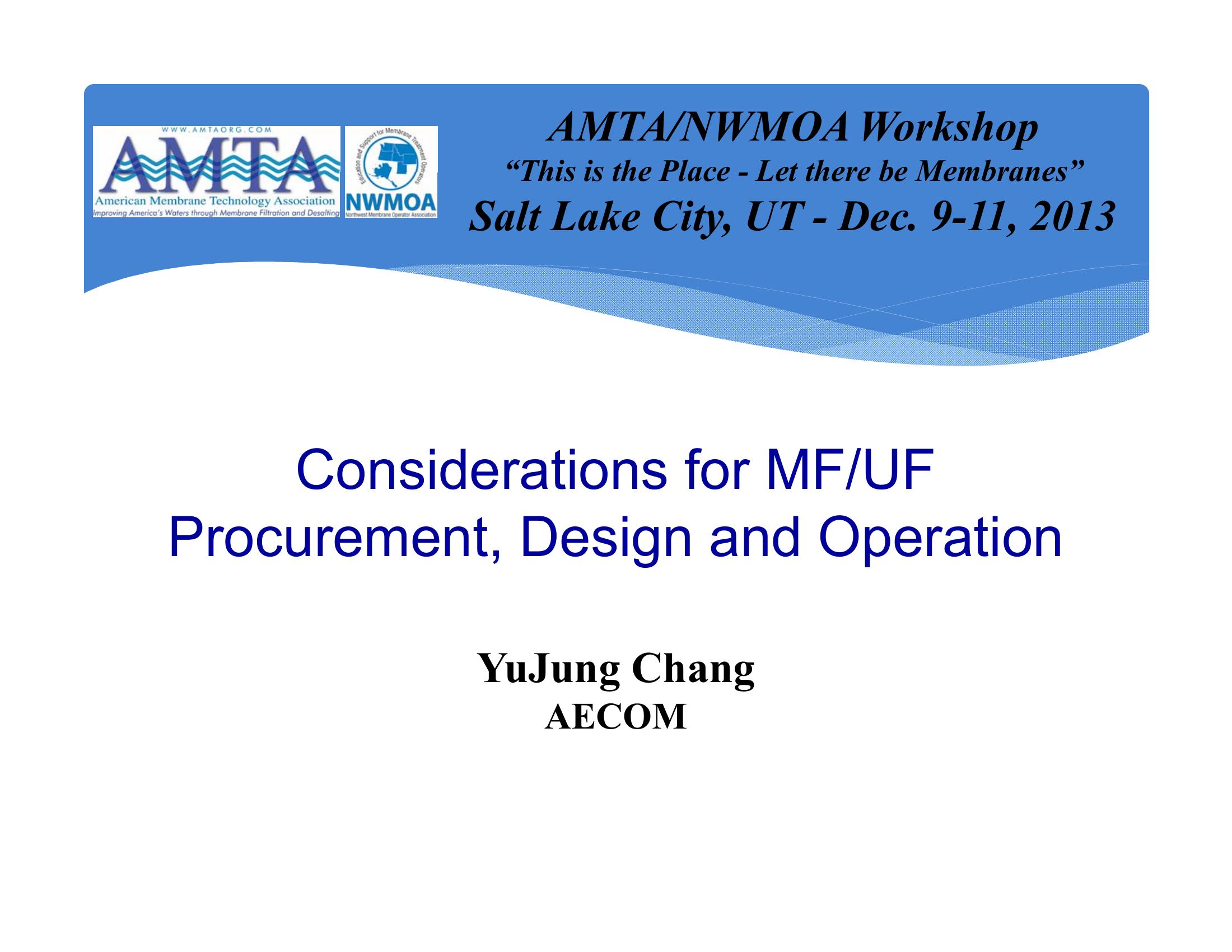 Considerations for MF/UF Procurement, Design & Operation