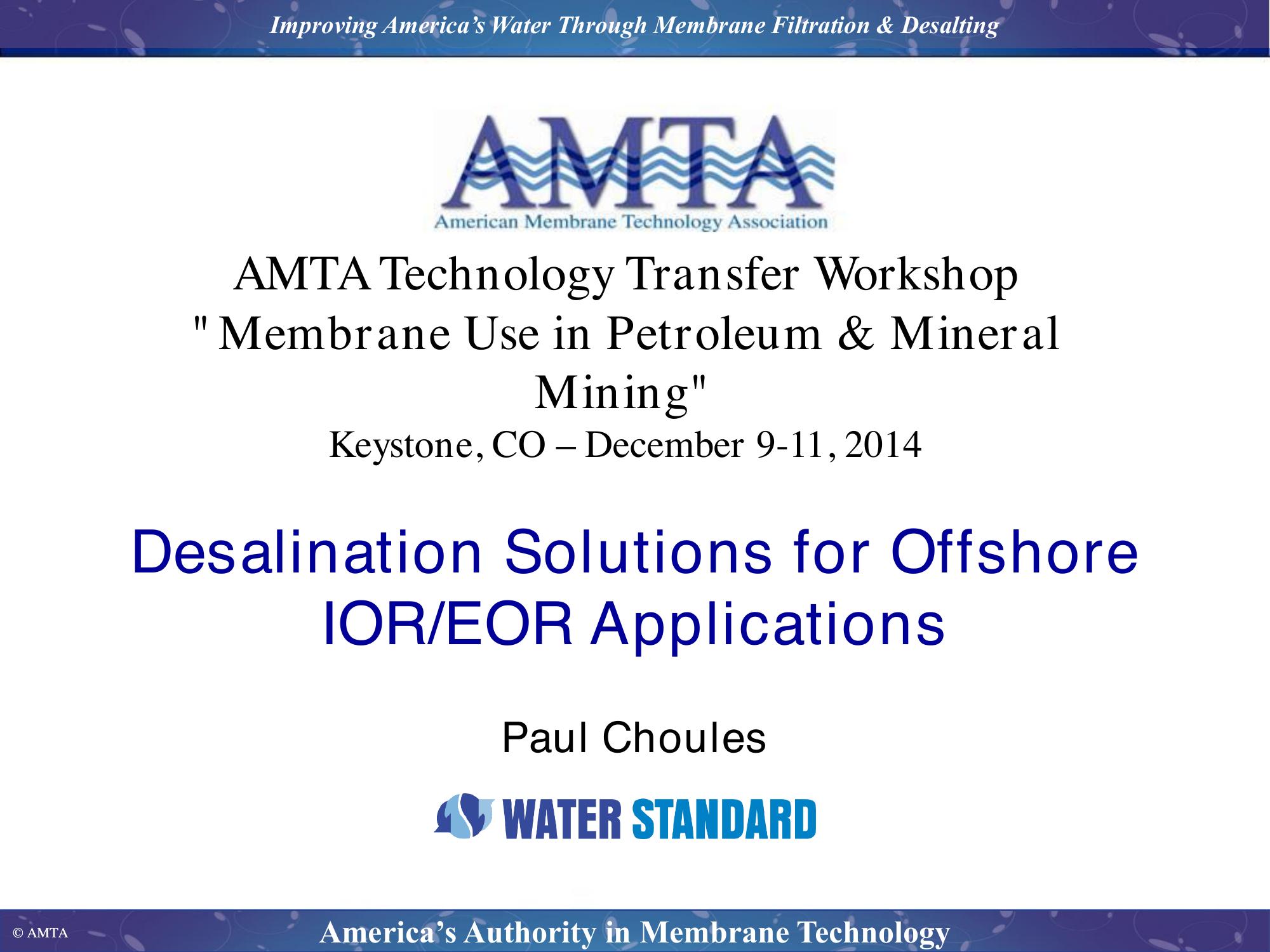 Desalination Solutions for Offshore IOR/EOR Applications