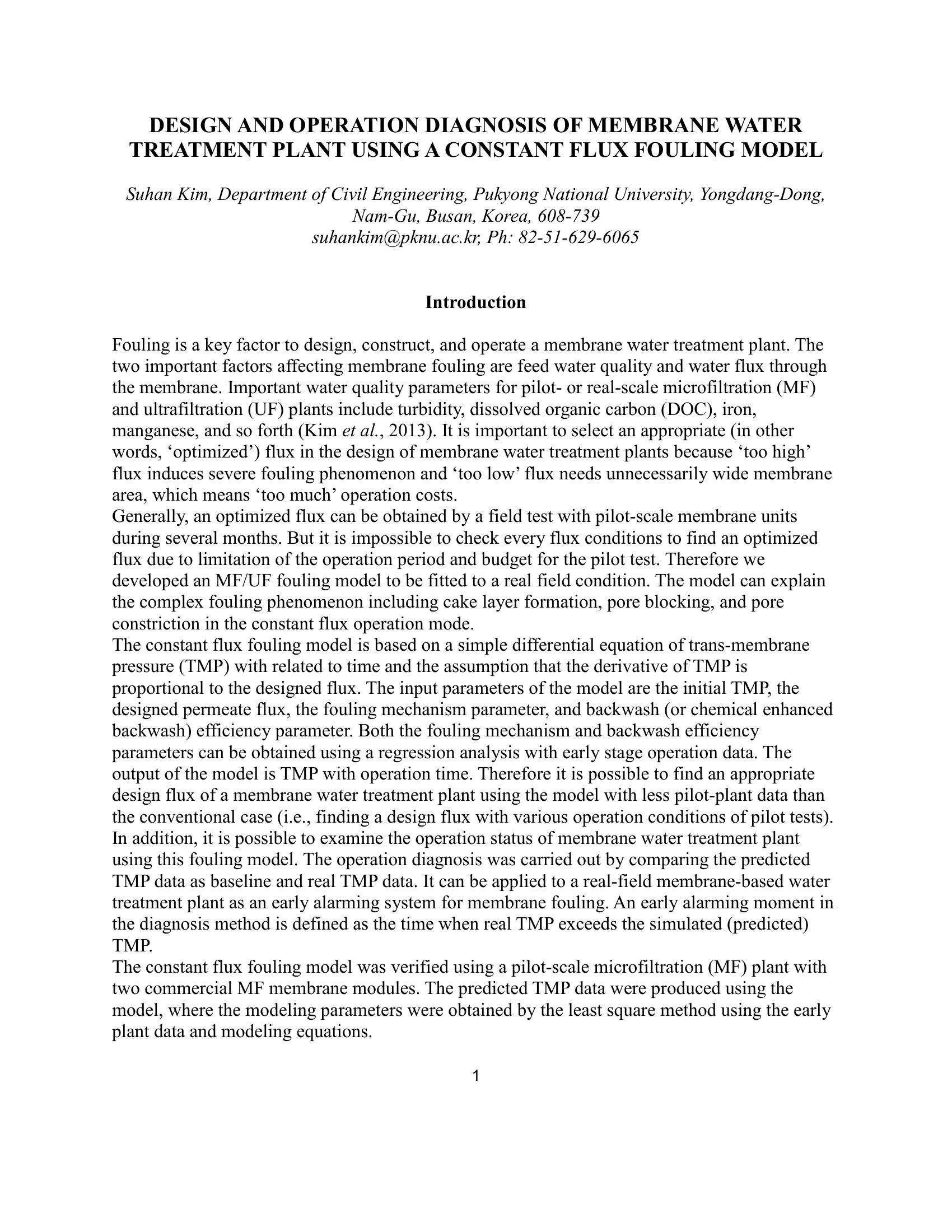 This paper describes a model system to predict fouling of low pressure membrane systems using a constant flux model.