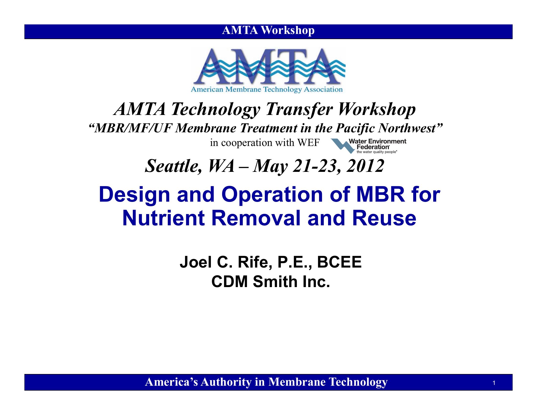 This presentation discusses the application of membrane reactor technology for nutient removal and water reuse. Aqlternative flowsheets are presented, with a discussion of alternatives to RO for MBR effluent polishing. A case study for Rancho Rio, NM, is presented.