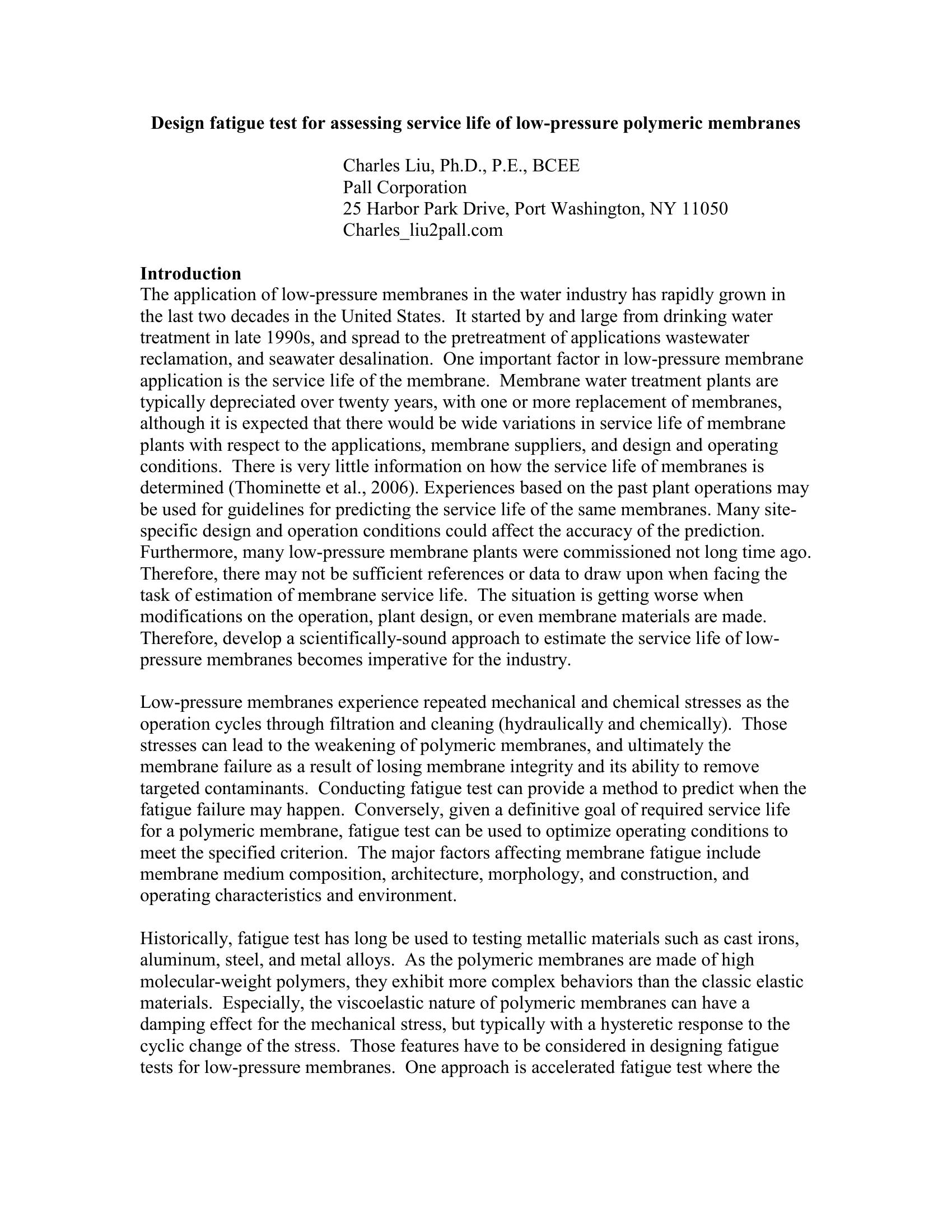 | Keywords | Fatigue test, Polymeric membrane, membrane service life |