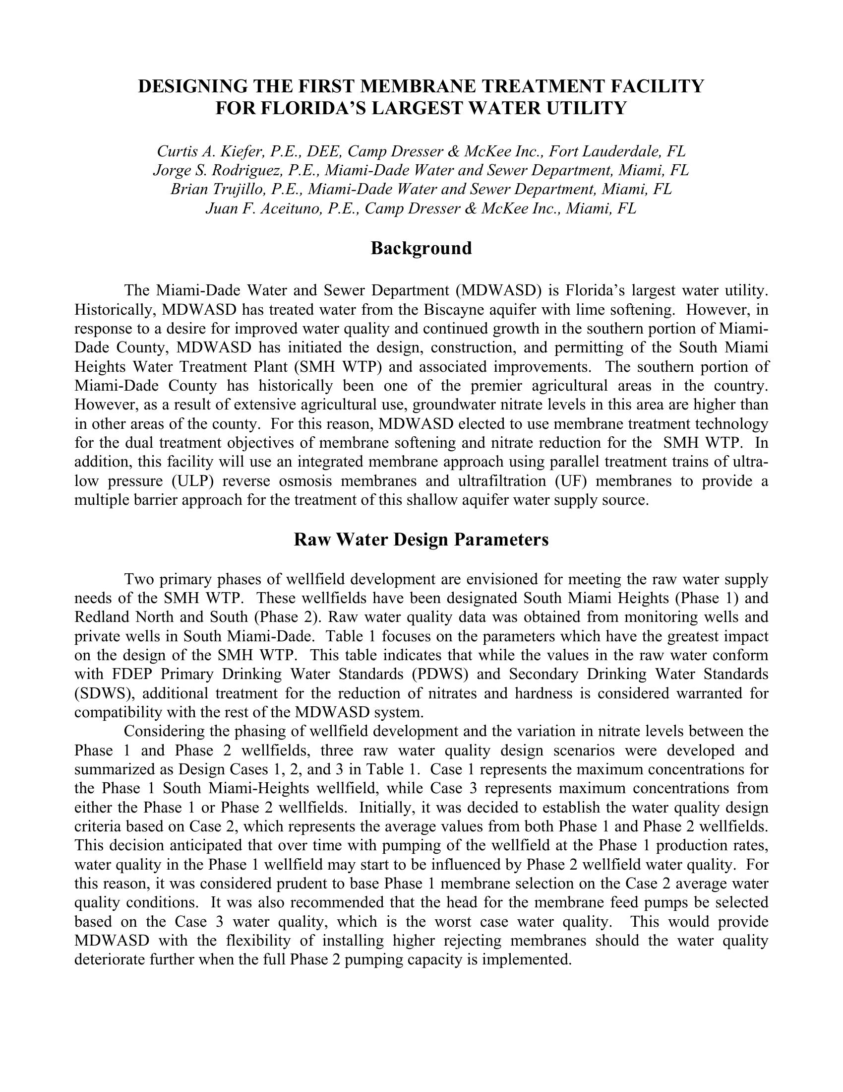 KeywordsSouth Miami Heights, ultrafiltration, reverse osmosis