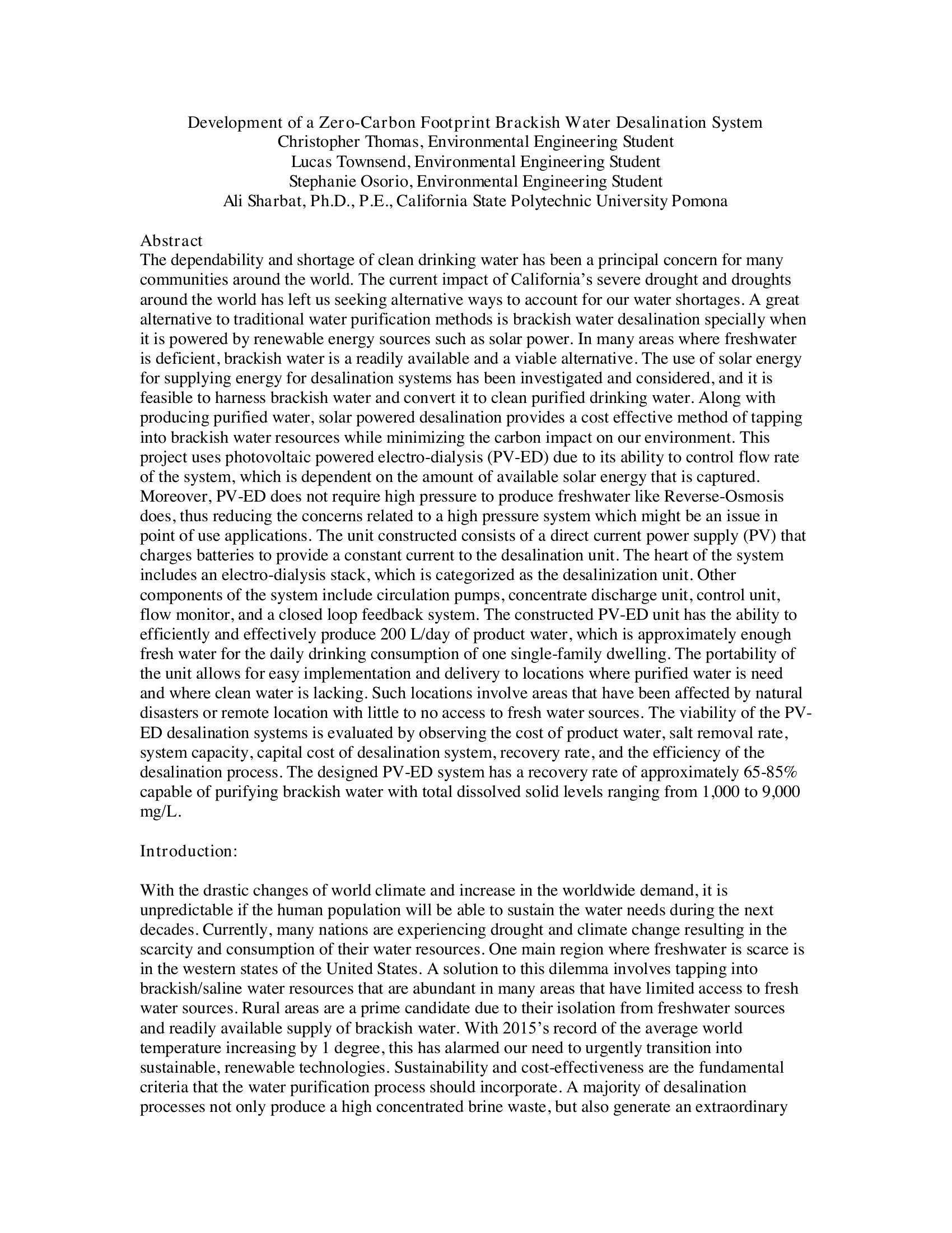 | Keywords | photovoltaic, desalination, electrodialysis |