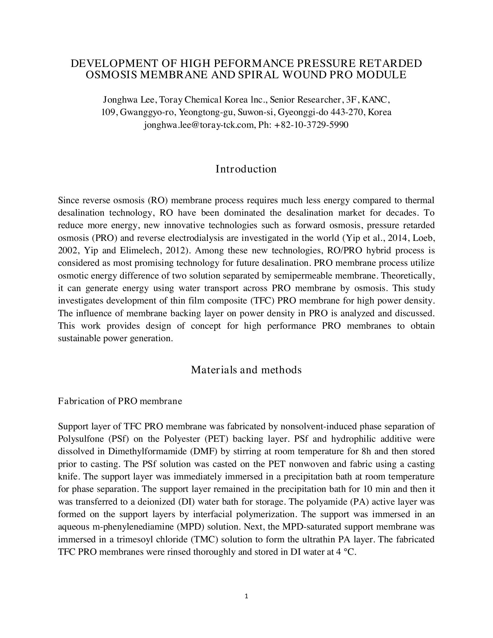 KeywordsPressure Retarded Osmosis (PRO), RO/PRO Hyprid Systems