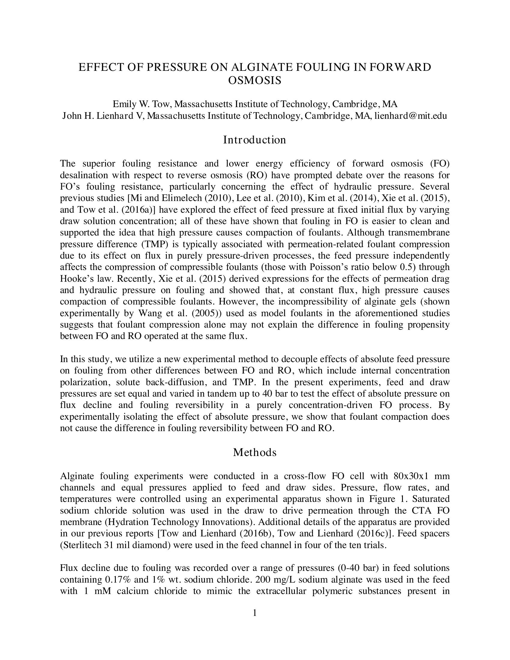 Effect of Pressure on Alginate Fouling in Forward Osmosis