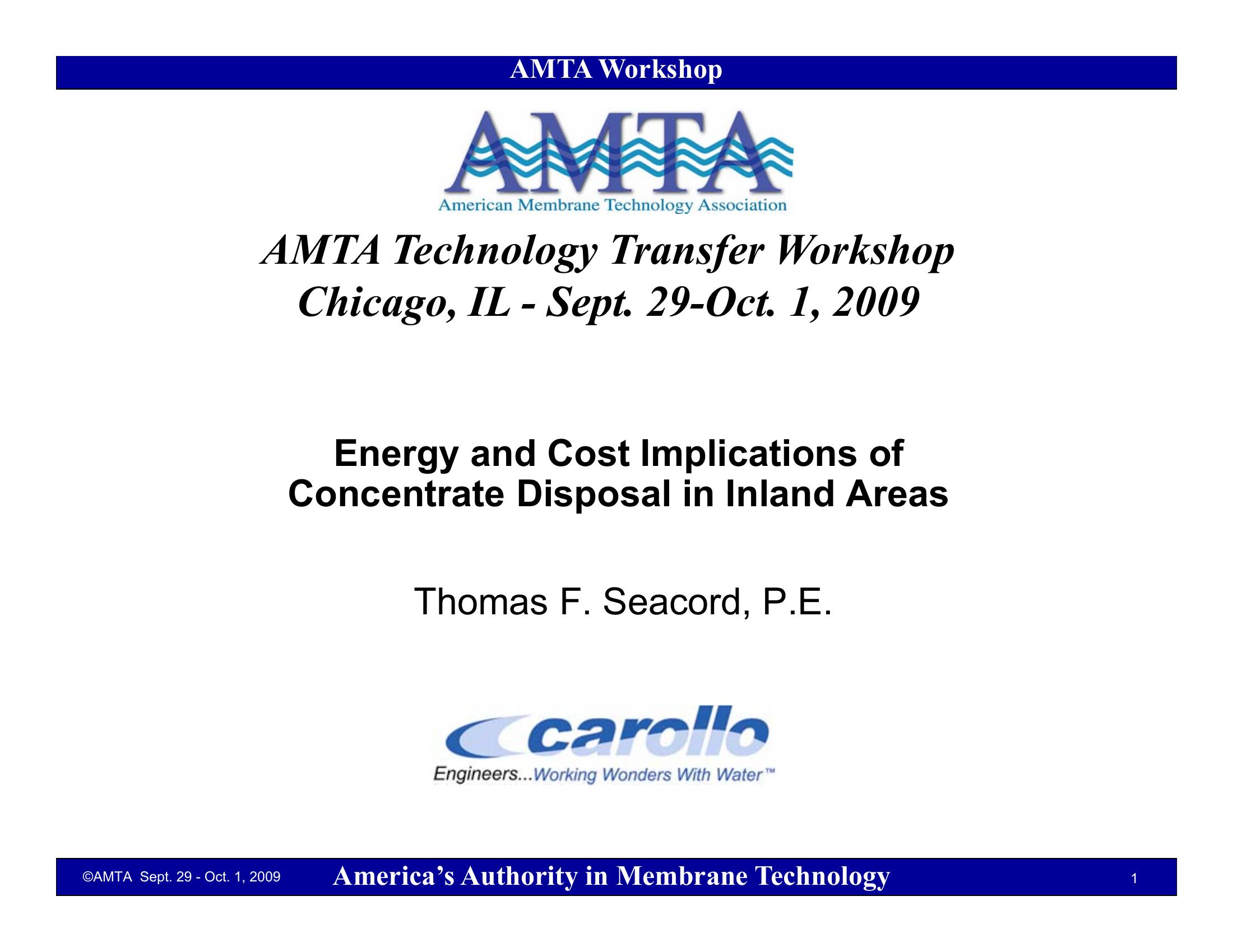 This powerpoint presents an overview of concentrate disposal options for inland desalination facilities. Case studies include brine minimization/recovery and zero liquid discharge examples.
