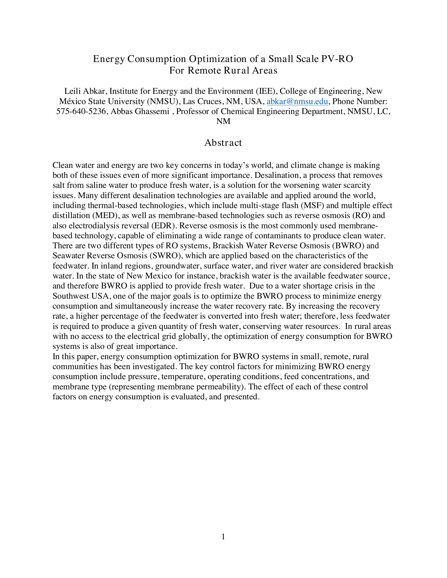 KeywordsEnergy Consumption, Rural Areas, Brackish Water RO (BWRO),