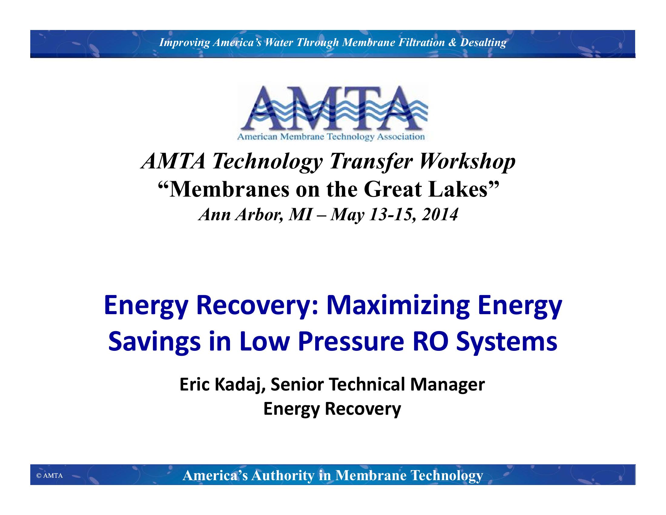 Energy Recovery: Maximizing Energy Savings in Low Pressure RO Systems
