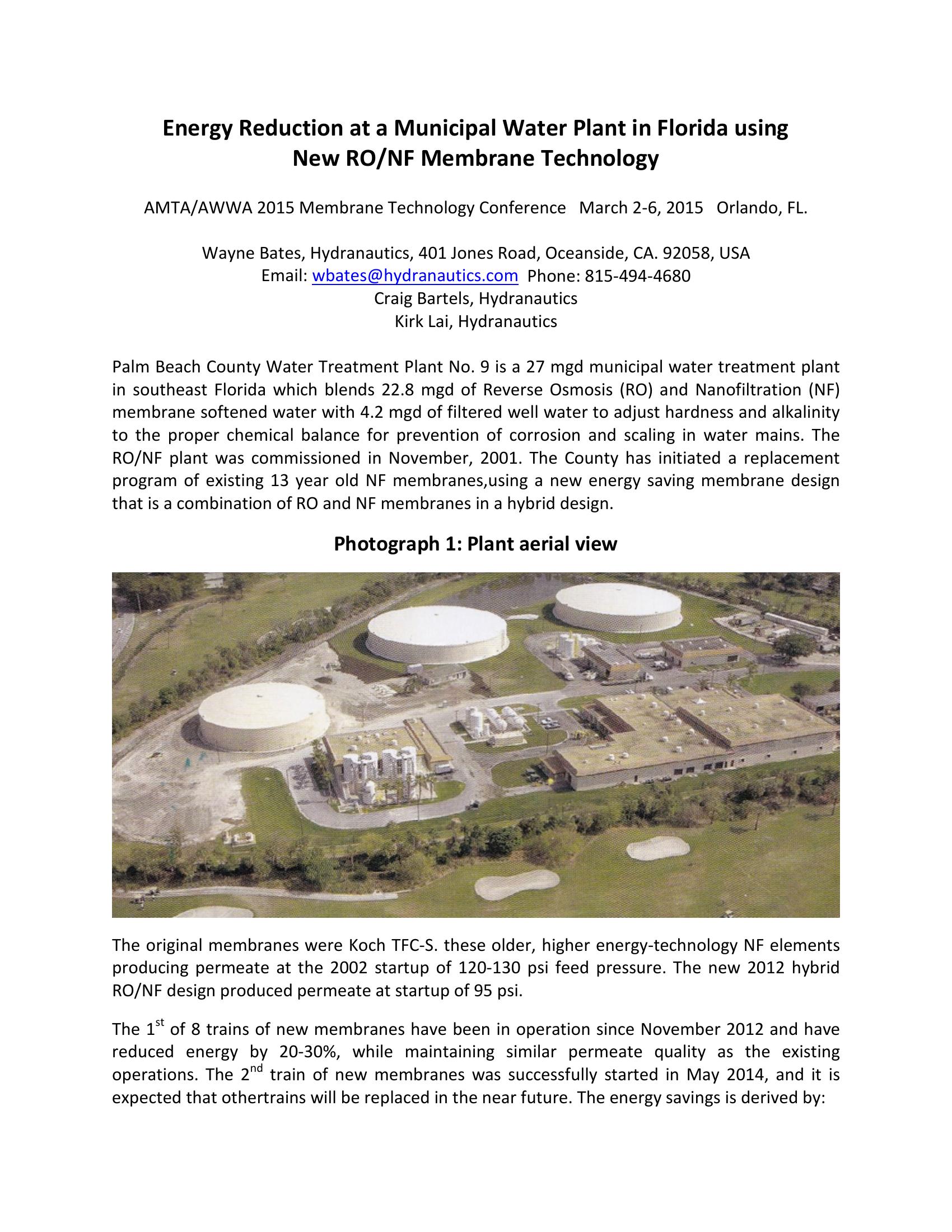 Energy Reduction at a Municipal Water Plant in Florida using New RO/NF Membrane Technology