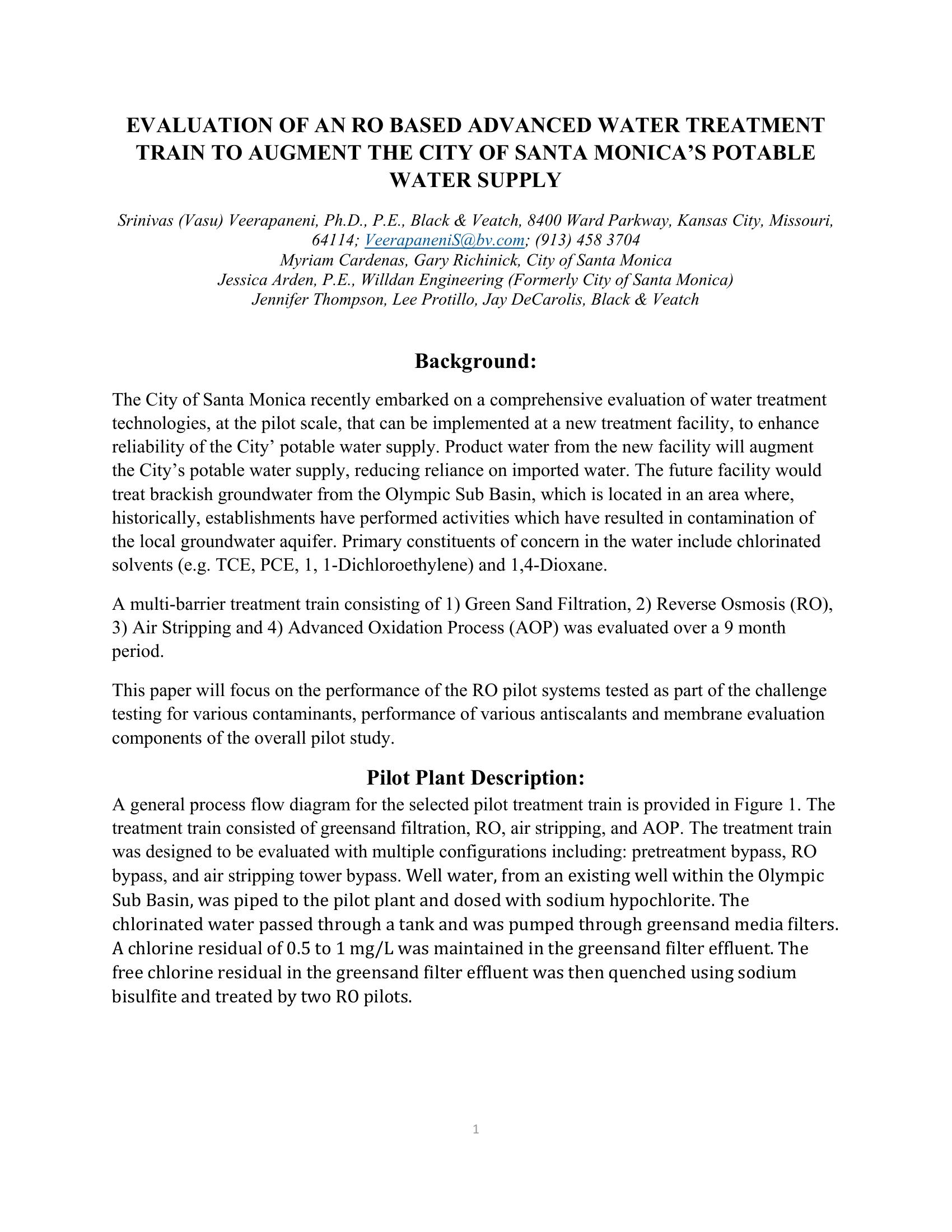 This paper will discuss performance of various RO membranes tested as part of the challenge testing for various contaminants, performance of various antiscalants and membrane evaluation components of the over pilot study.