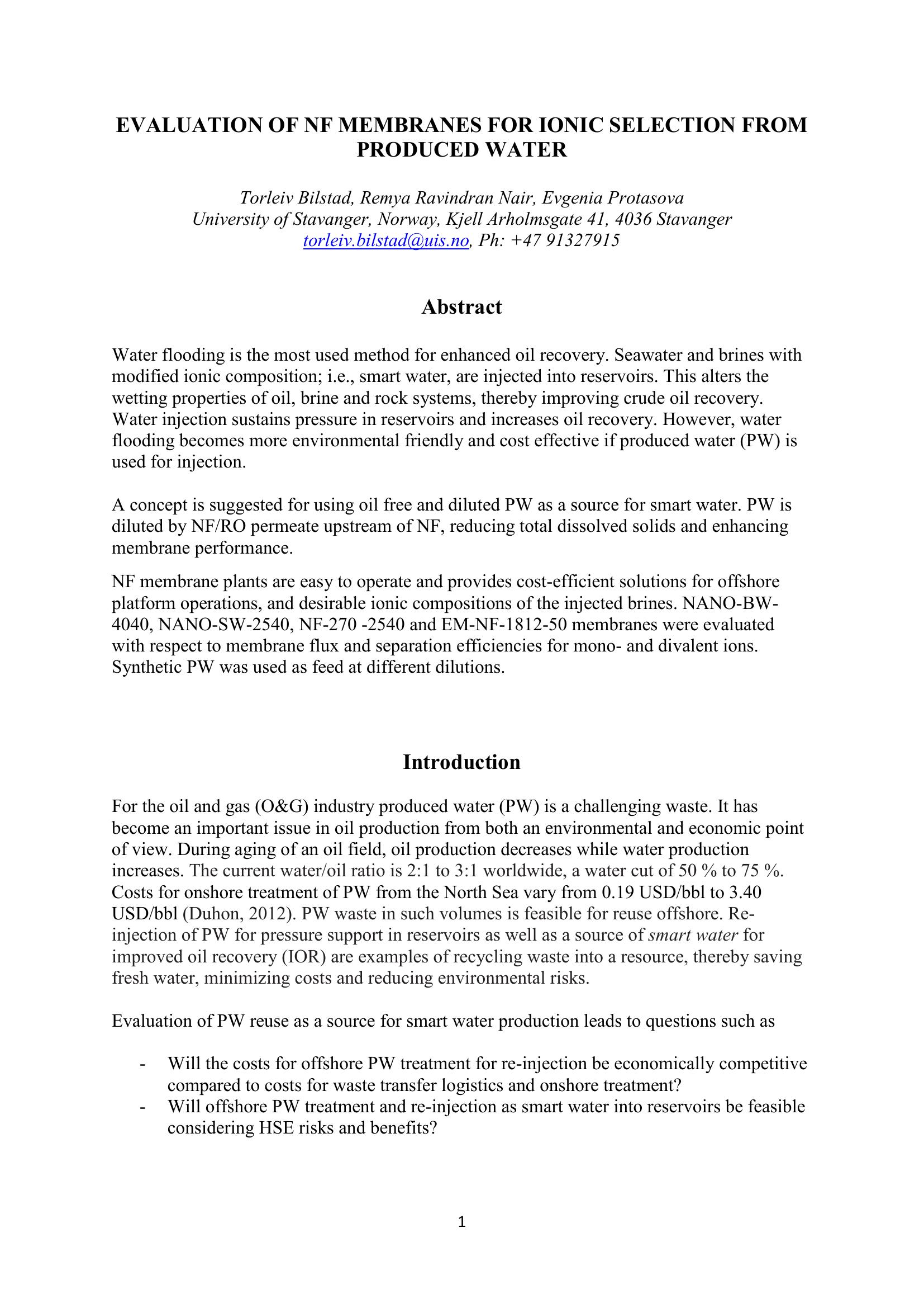Keywordsnanofiltration, produced water, ionic selection