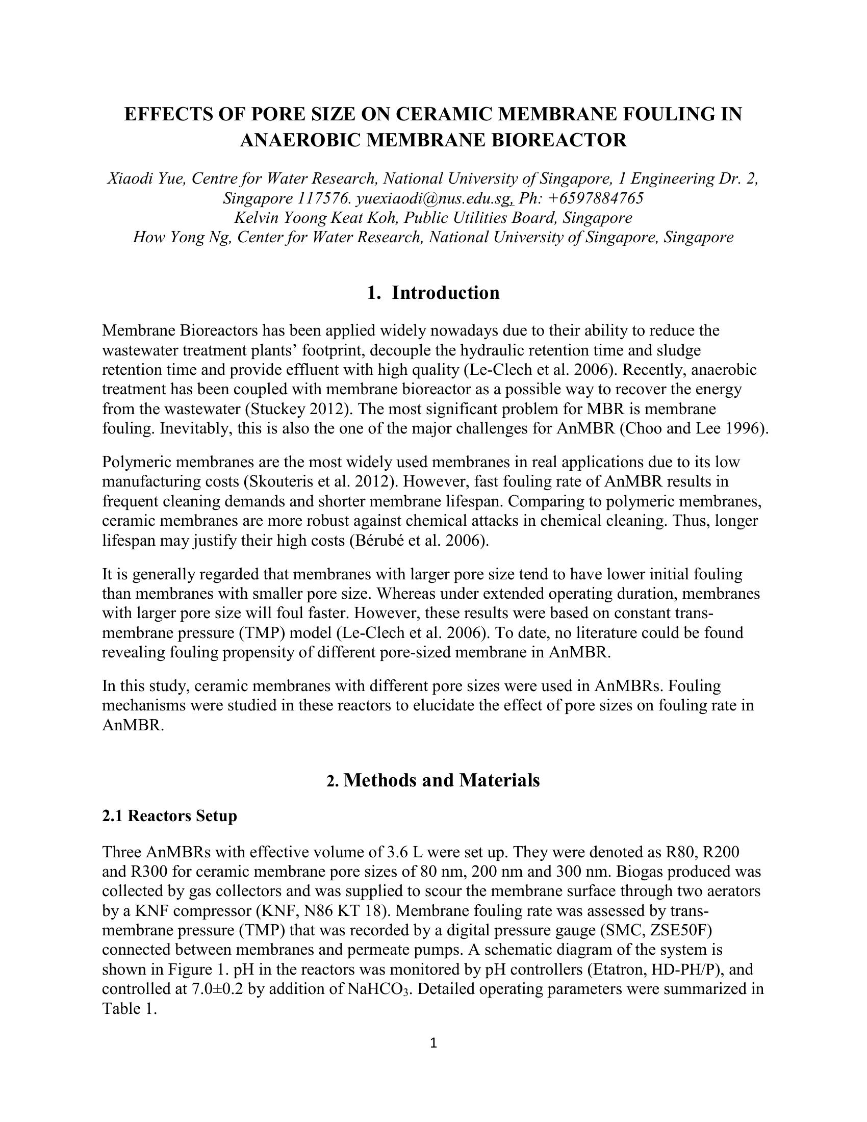 KeywordsFouling, Ceramic, anaerobic, pore size