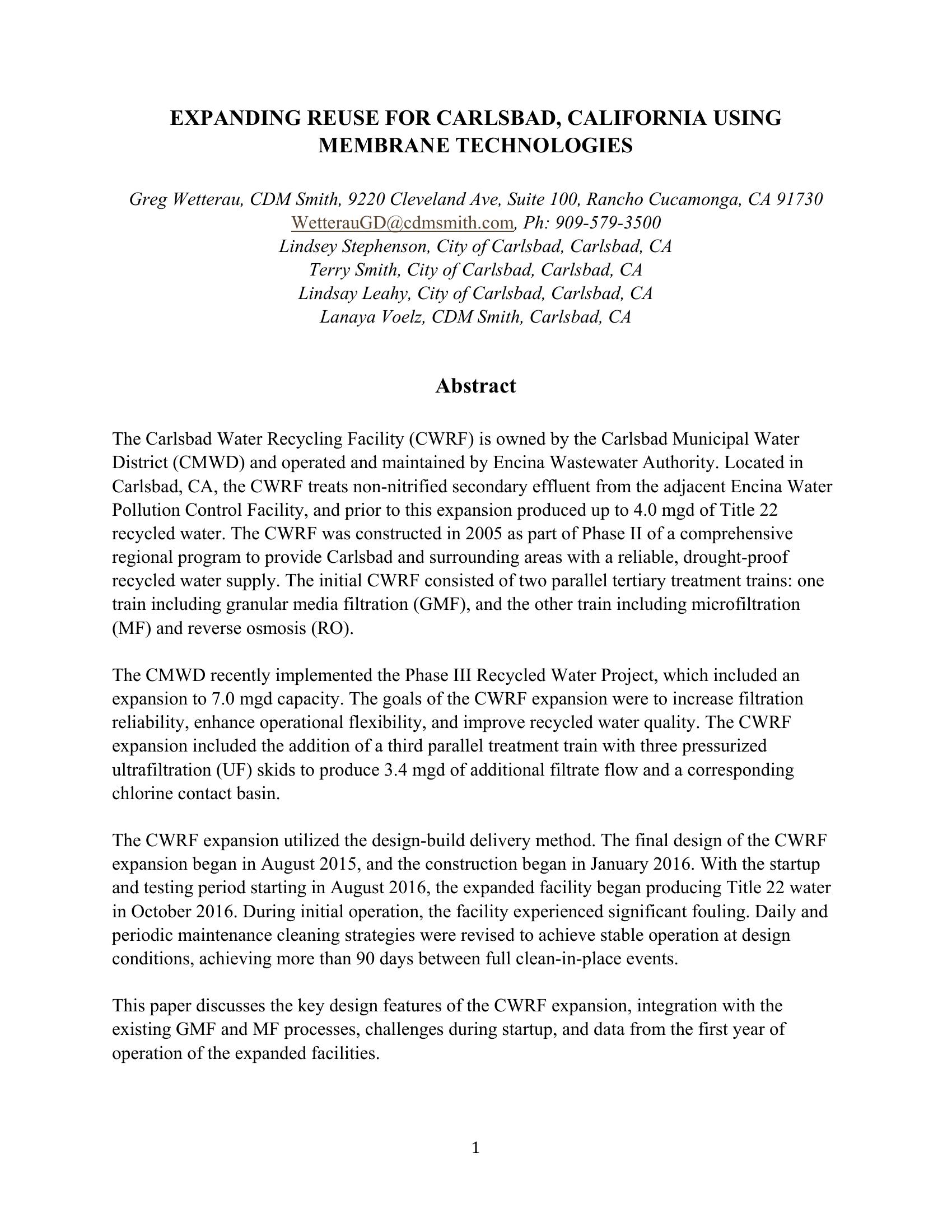 Expanding Reuse for Carlsbad, California, Using Membrane Technologies