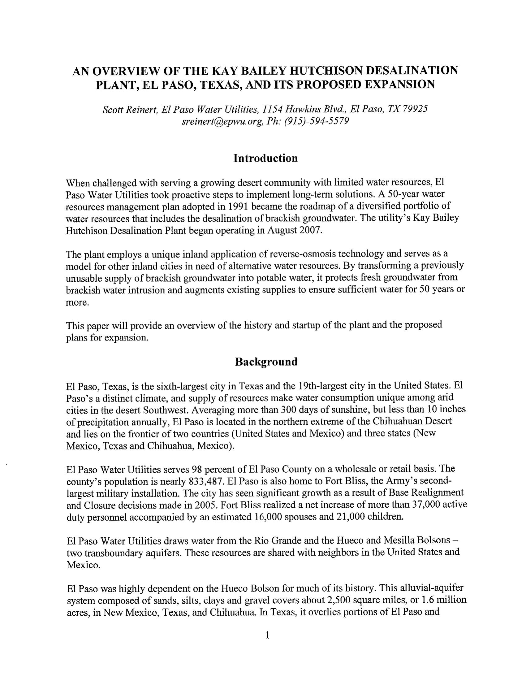 | Keywords | El Paso, brackish water, plant expansion, inland desalination |