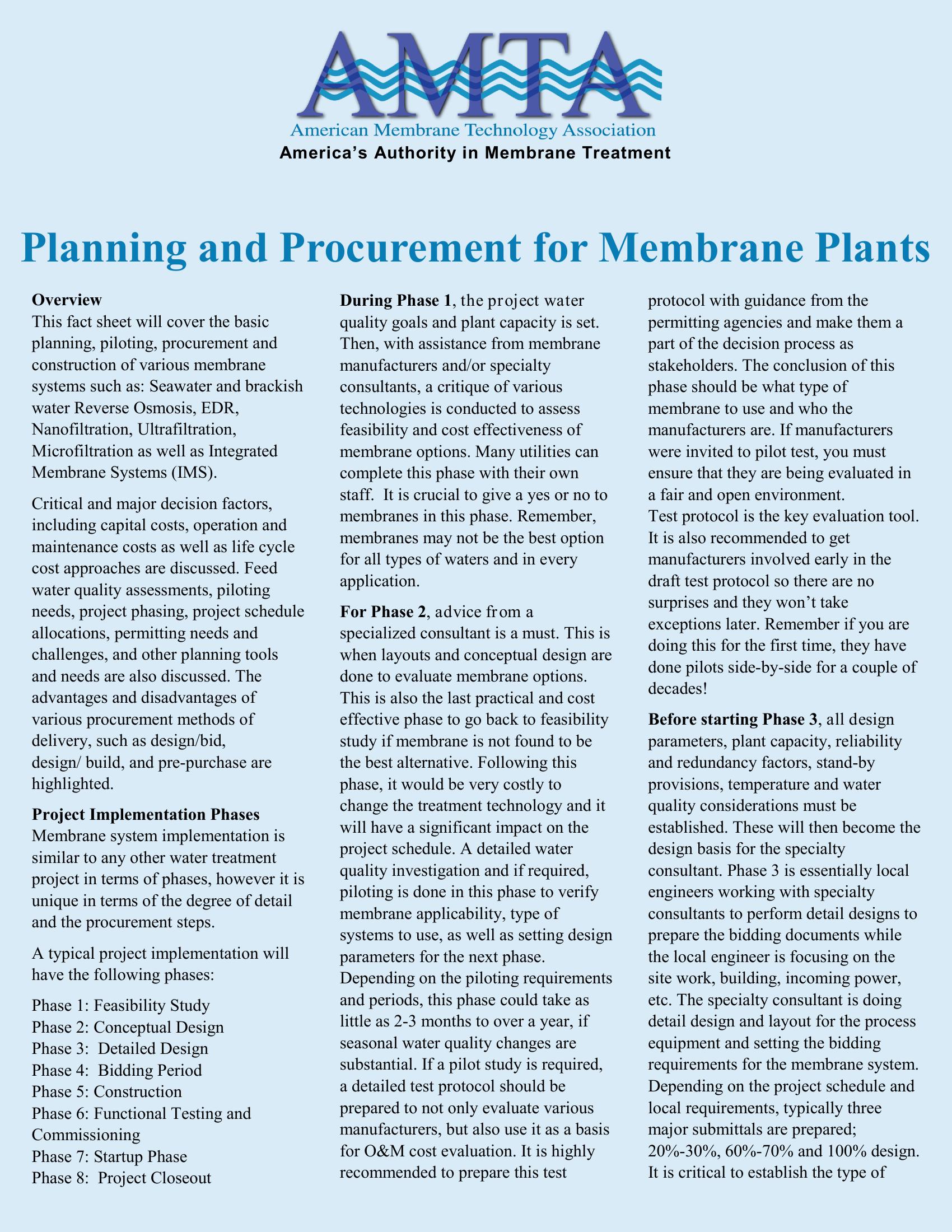 | Keywords | Fact Sheet, Procurement, Membrane Plant |