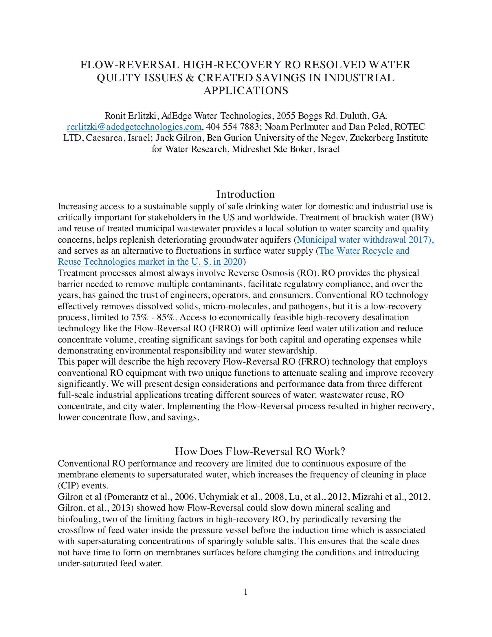| Keywords | Reverse Osmosis, Flow-Reversal, Brackish Water |