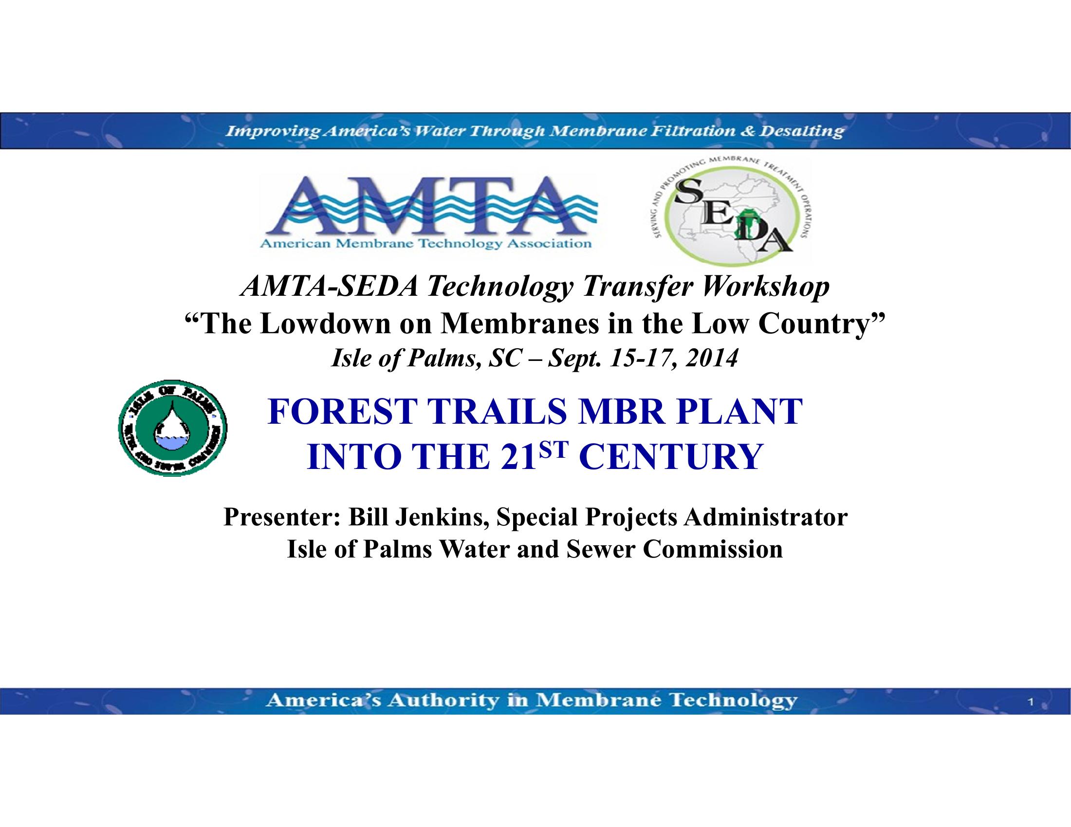 This presenation includes a case study of the Forest Trails Membrane Bioreactor Wastewater Treatment Facility in South Carolina. The presentation presents a history of the wastewater treatment facility, a comparison of alternative plant improvements that were considered, and a description of the MBR facility that has been implemented. Information on the equipment selected, design criteria, and operations performance is included.