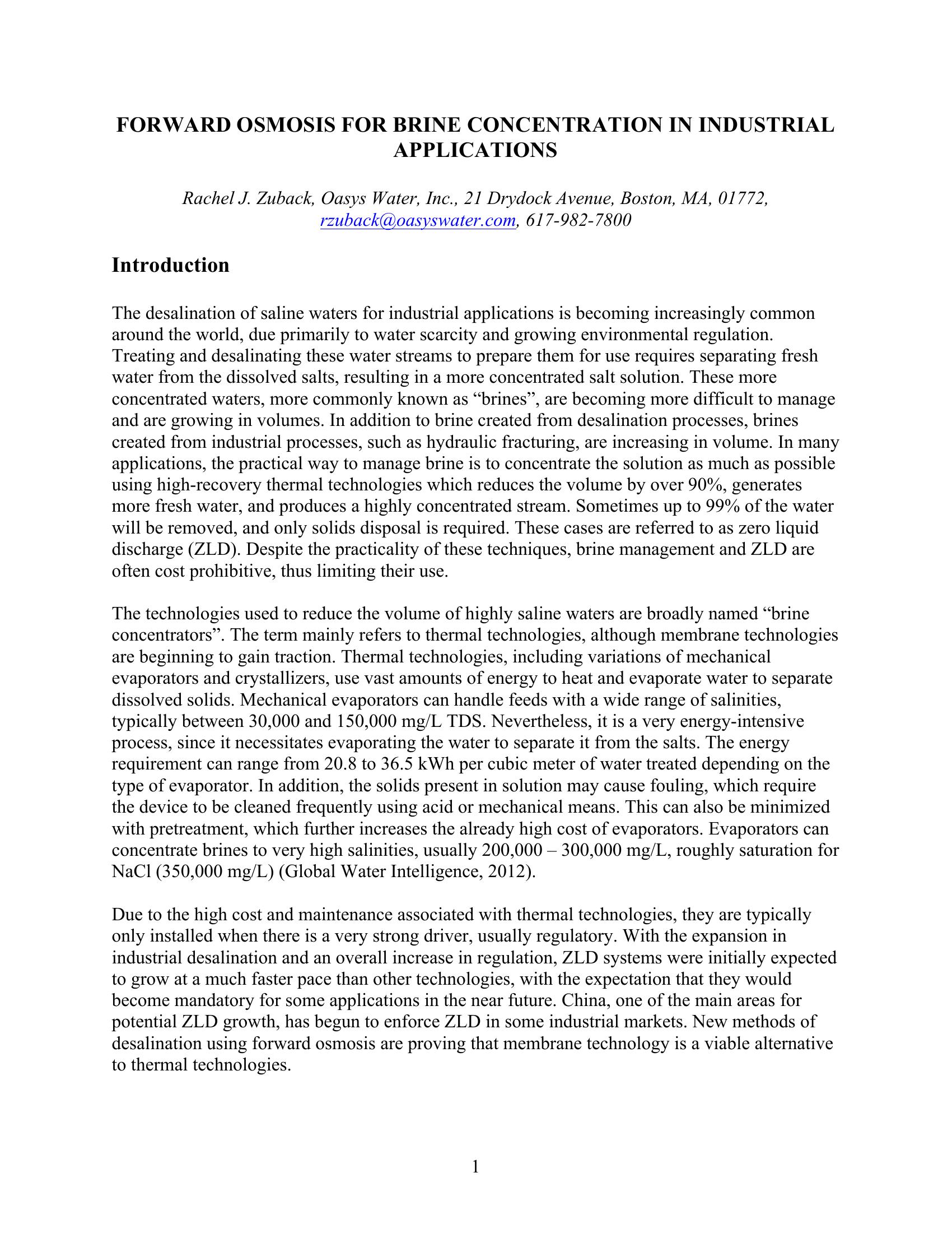KeywordsForward Osmosis, Brine Concentration, Zero Liquid Discharge (ZLD)