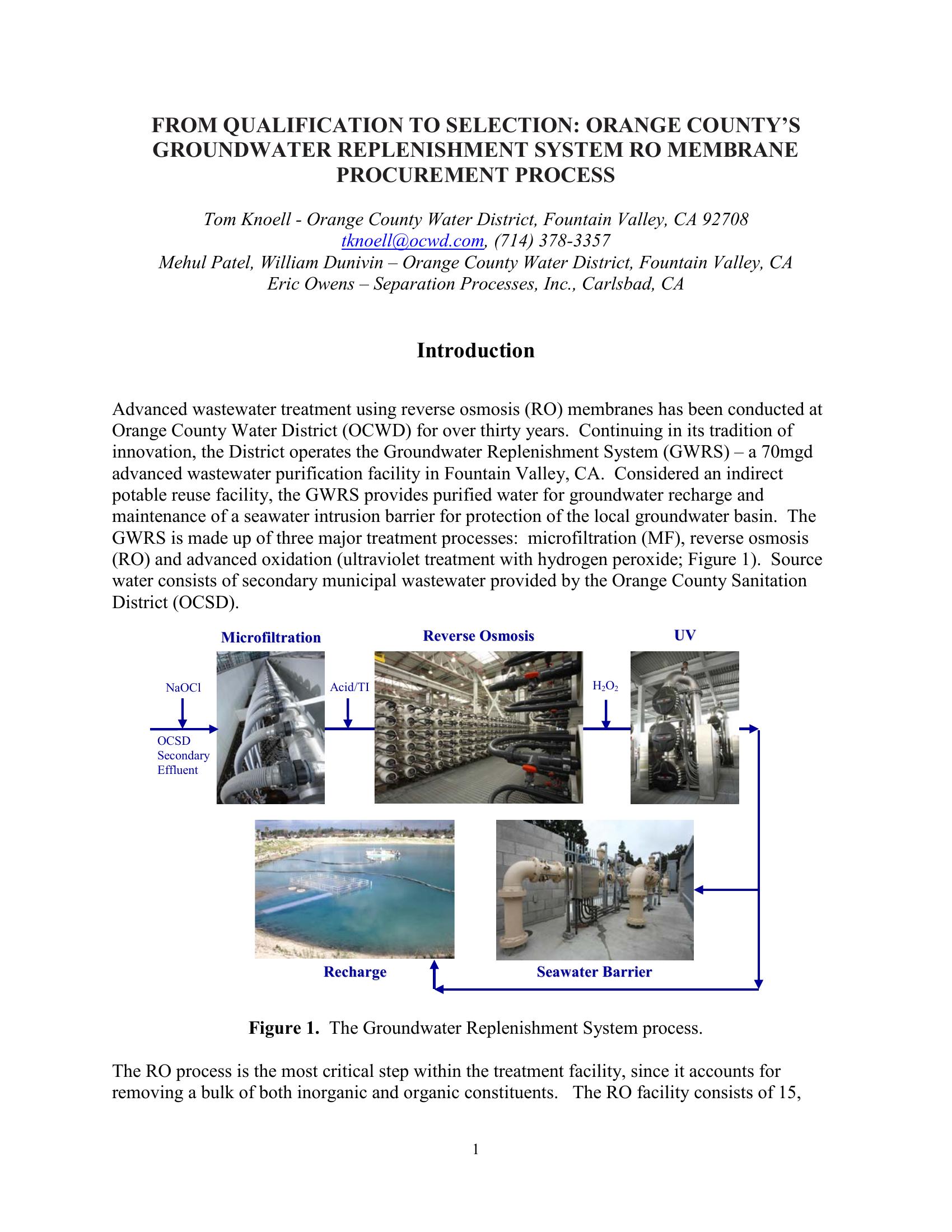 From Qualification to Selection: Orange County?s Groundwater Replenishment System RO Membrane Procurement Process