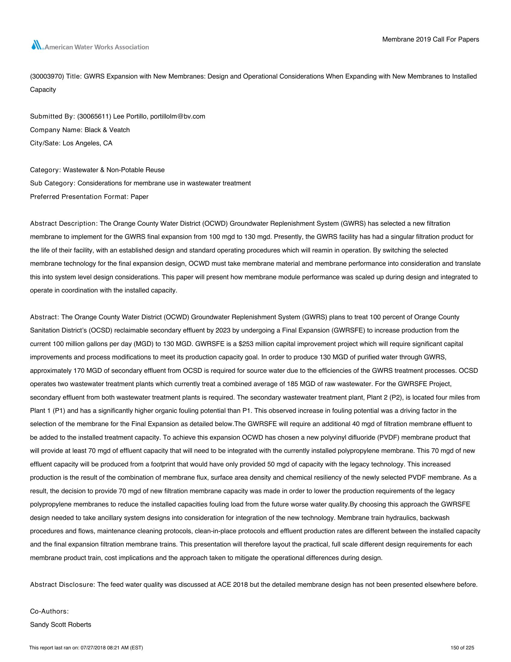The Orange County Water District (OCWD) Groundwater Replenishment System (GWRS) has selected a new filtration membrane to implement for the GWRS final expansion from 100 mgd to 130 mgd. Presently, the GWRS facility has had a singular filtration product for the life of their facility, with an established design and standard operating procedures which will reamin in operation. By switching the selected membrane technology for the final expansion design, OCWD must take membrane material and membrane performance into consideration and translate this into system level design considerations. This paper will present how membrane module performance was scaled up during design and integrated to operate in coordination with the installed capacity.