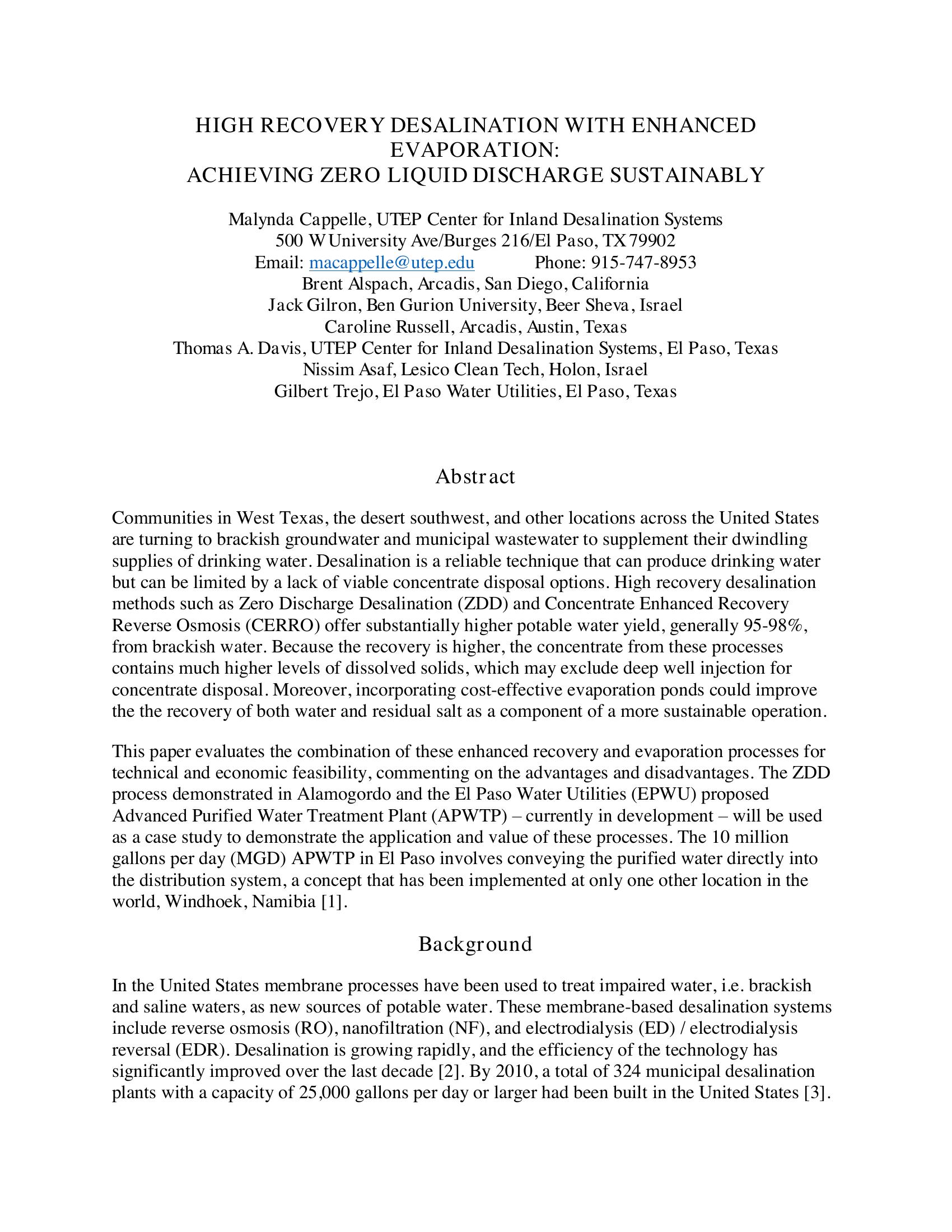 | Keywords | Zero Liquid Discharge (ZLD), Enhanced Evaporation, Concentrate Enhanced Recovery Reverse Osmosis (CERRO) |
