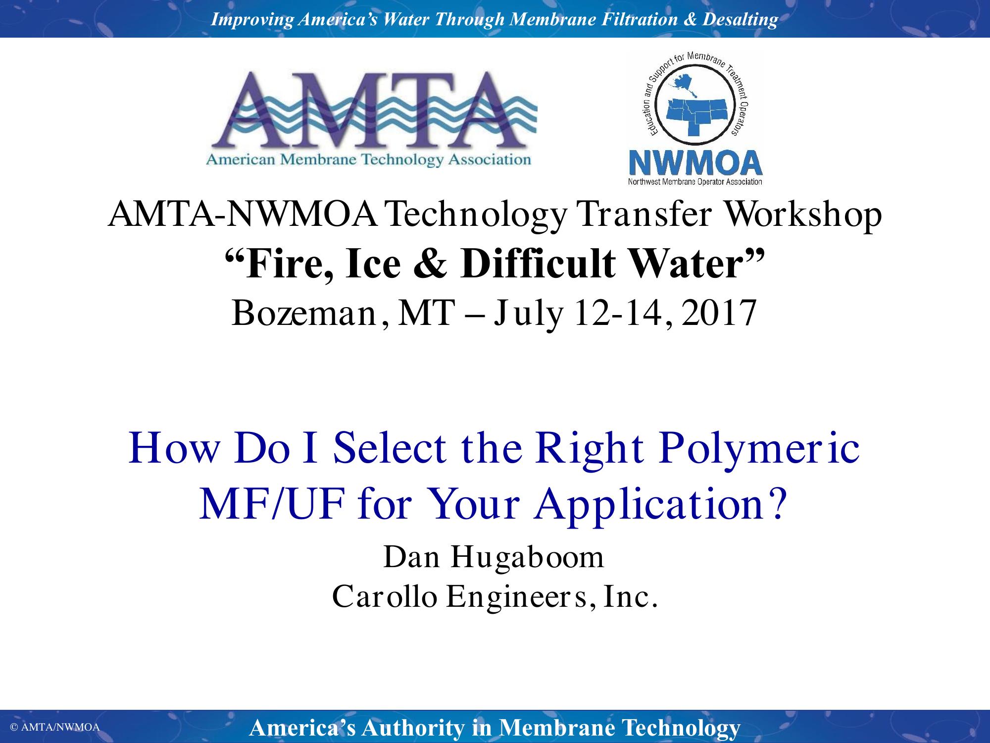 The field of commercially available membrane products is vast and expanding. In the early 2000’s the majority of the market share was held by 3 to 4 suppliers each offering a single product. Driven by demand to meet more challenging applications, these suppliers expanded their offerings to new membrane polymers and hydraulic configurations. Today, new entrants are taking advantage of opportunities to replace modules at existing installations and to participate in the market for modules to use in open platform membrane (interchangeable module) systems. This presentation will discuss how project requirements and constraints are used to identify membrane products best suited for a given application.
