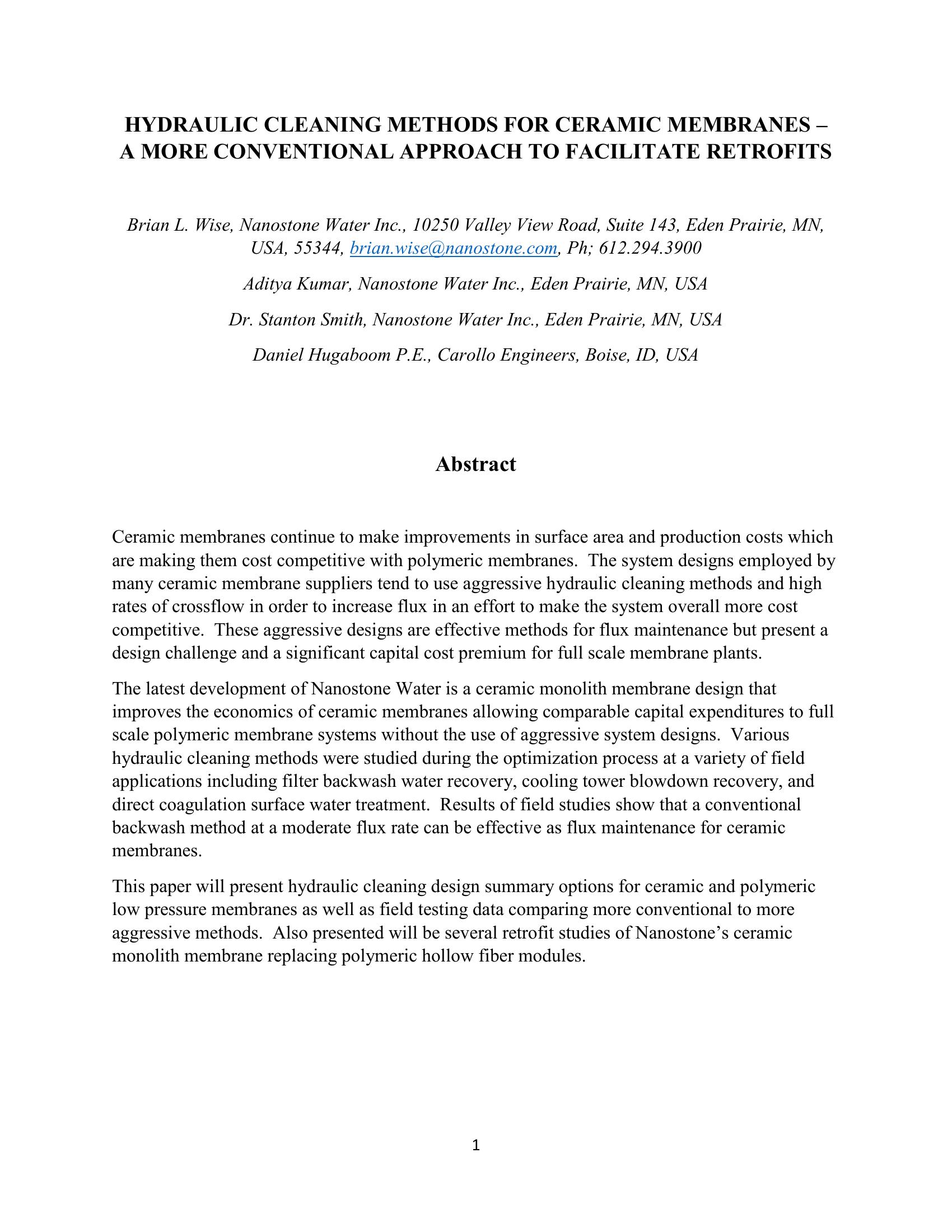 Hydraulic Cleaning Methods for Ceramic Membranes – A More Conventional Approach to Facilitate Retrofits