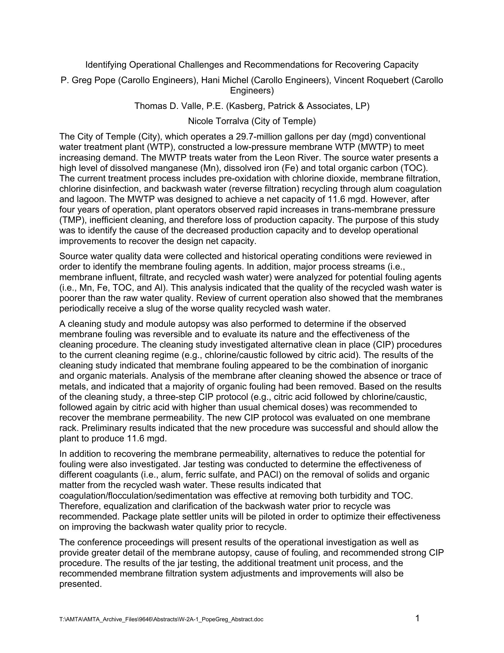 KeywordsCity of Temple, Leon River, Operational Improvements