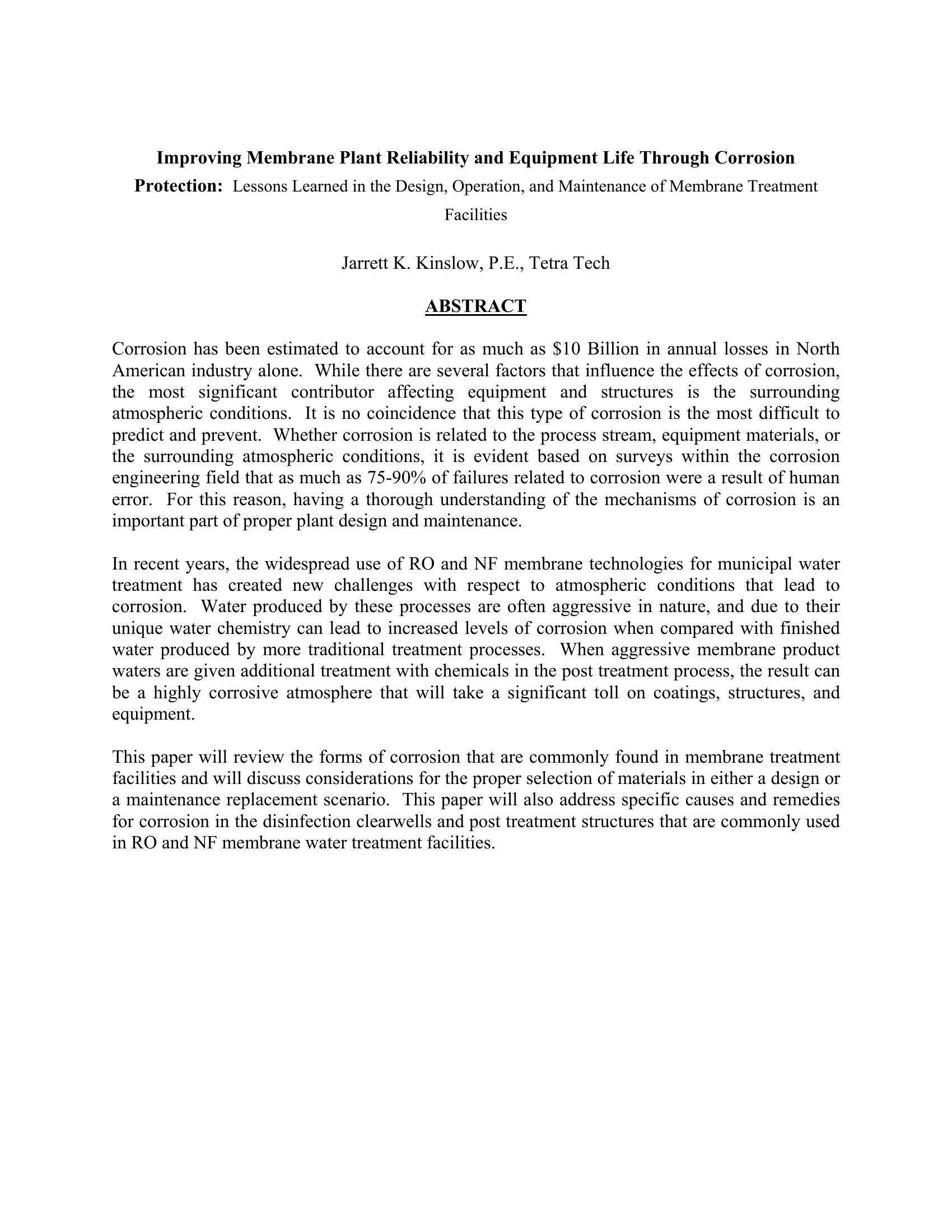 | Keywords | corrosion, membrane plant reliability, reverse osmosis |