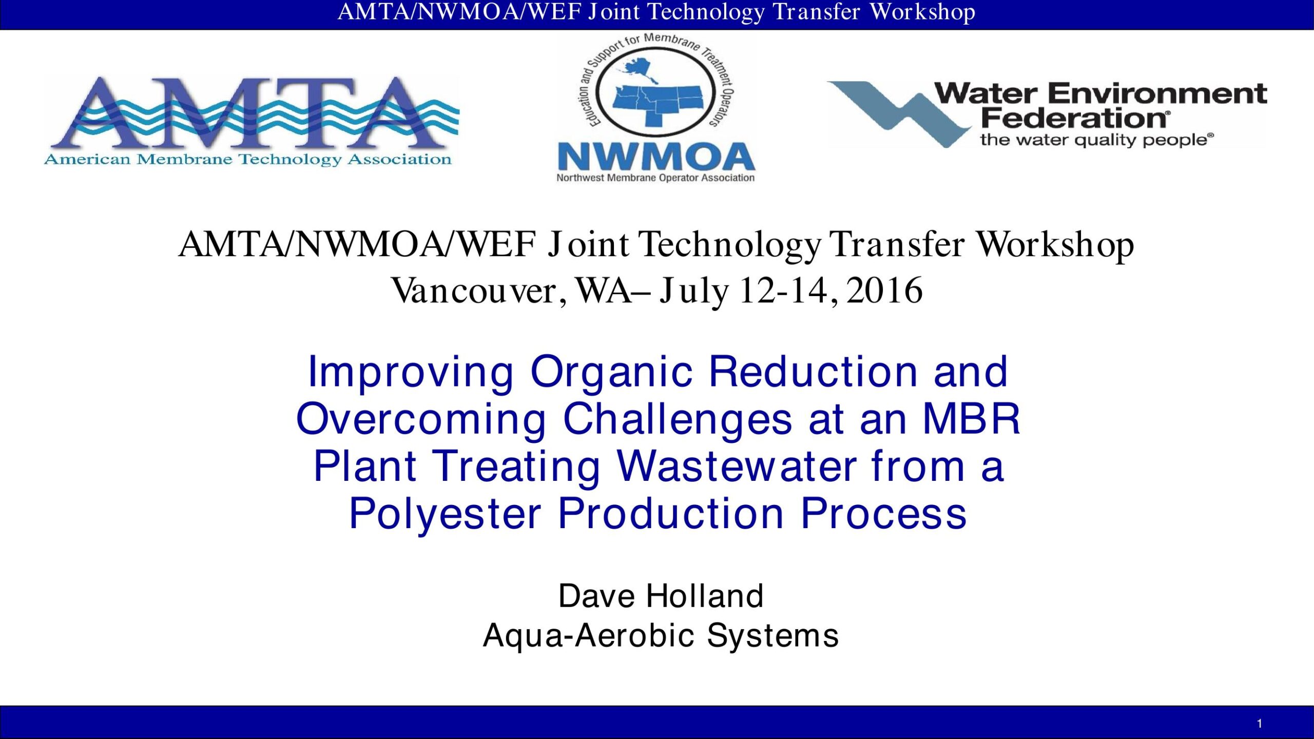 Improving Organic Reduction and Overcoming Challenges at an MBR Plant Treating Wastewater from a Polyester Production Process